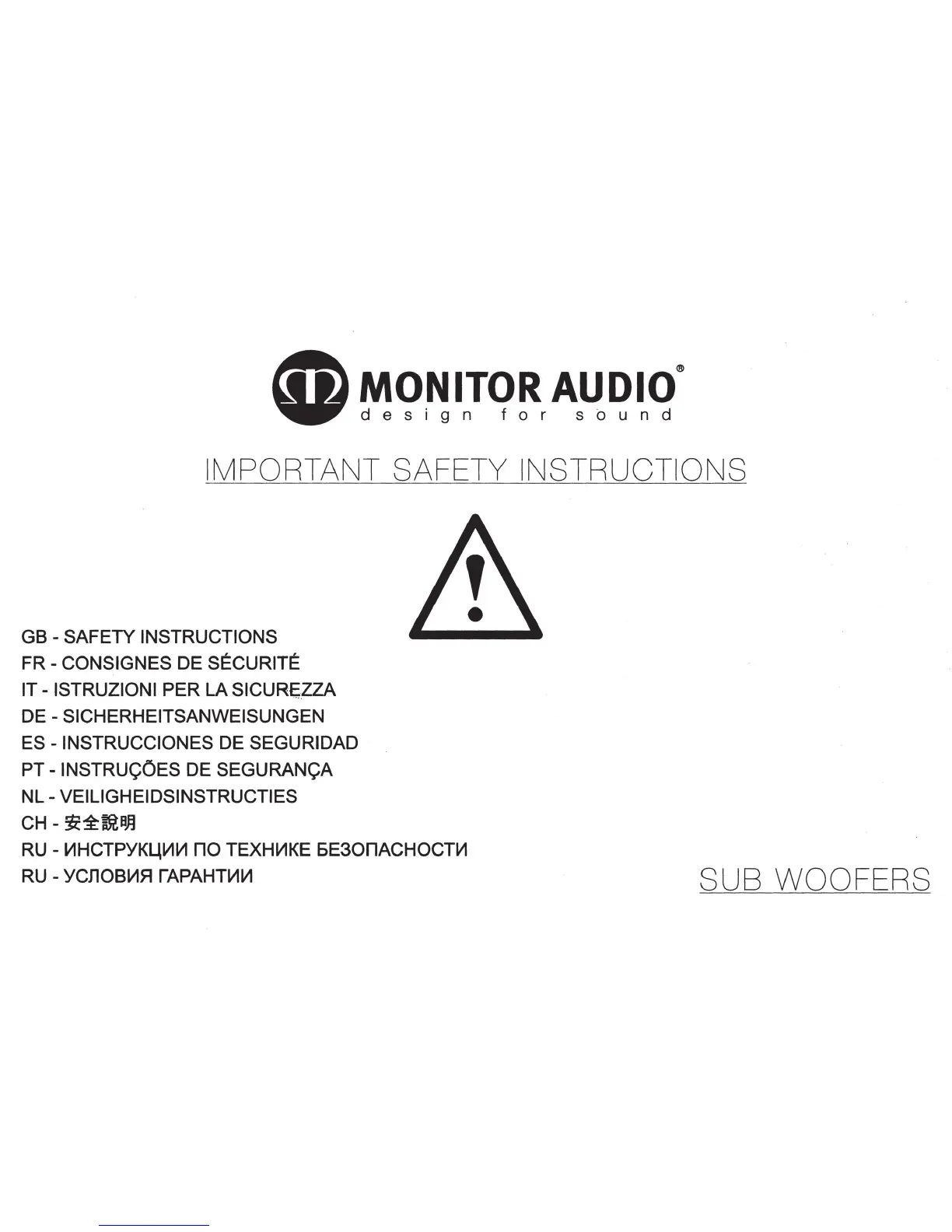 Monitor Audio Silver W-12 - Safety Instructions; General Safety Guidelines