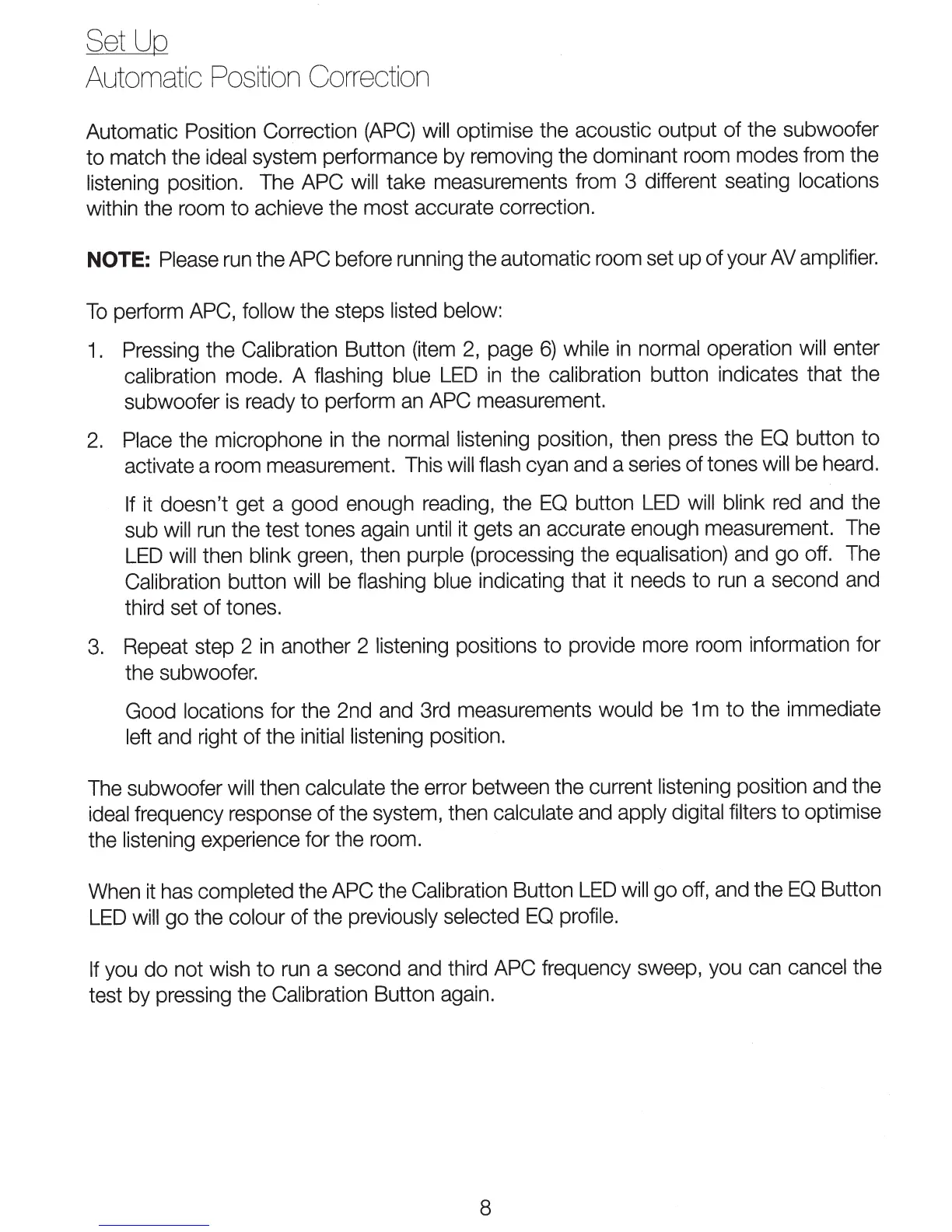 The subwoofer will then calculate the error between the current listening position and the