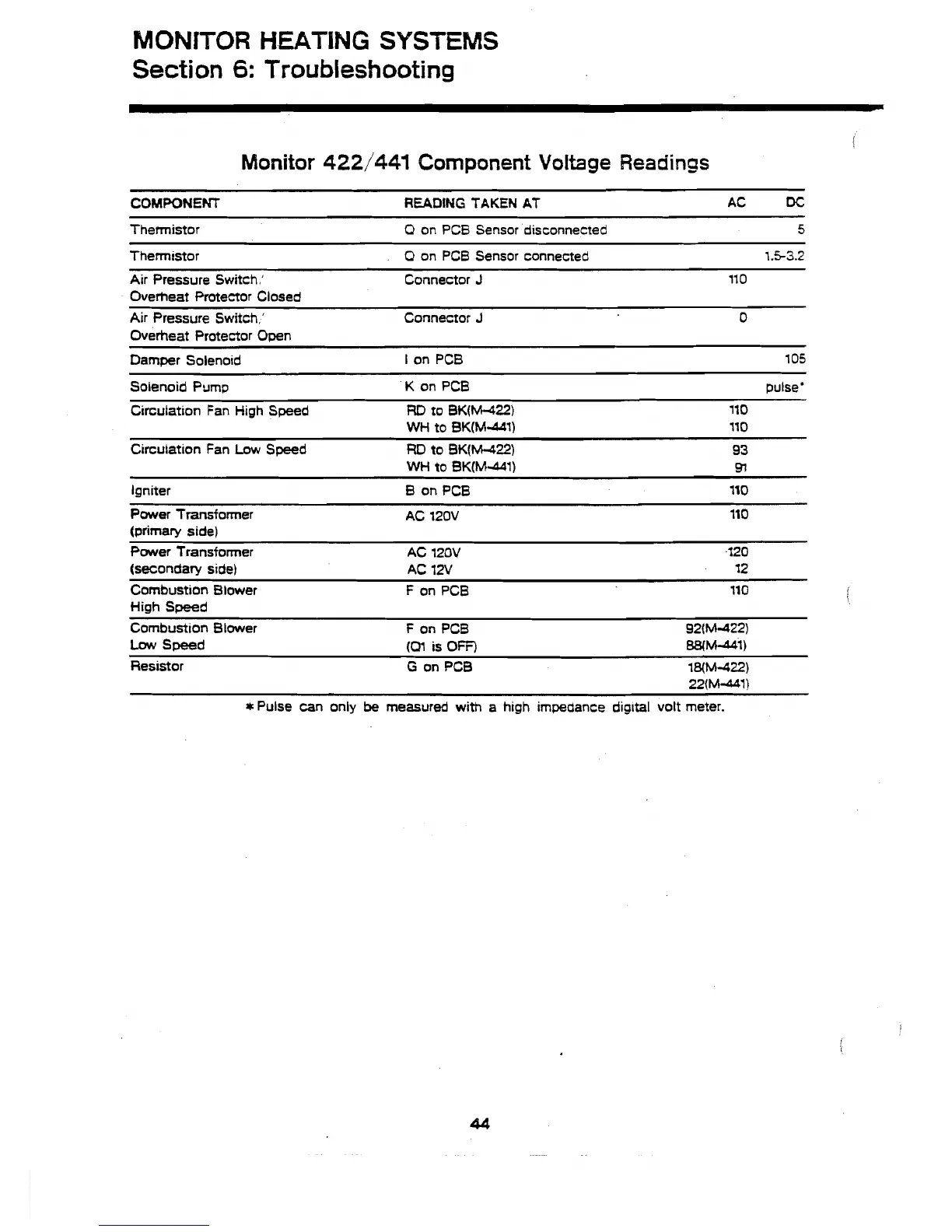 Monitor 422 - Monitor 4221441 Component Voltage Readings