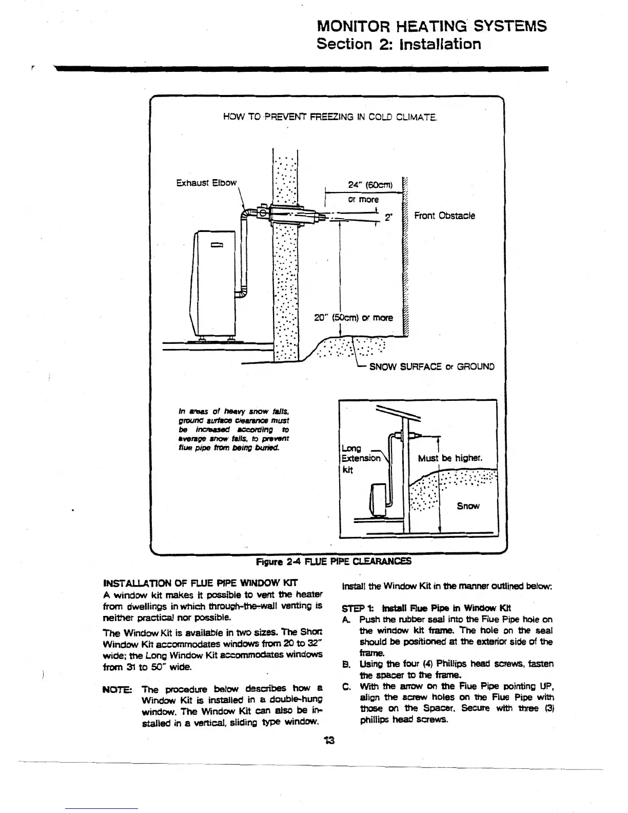 Monitor 441 - HOW TO PREVENT FREEZING IN COLD CLIMATE.; INSTALLATION OF FLUE PIPE WINDOW KIT