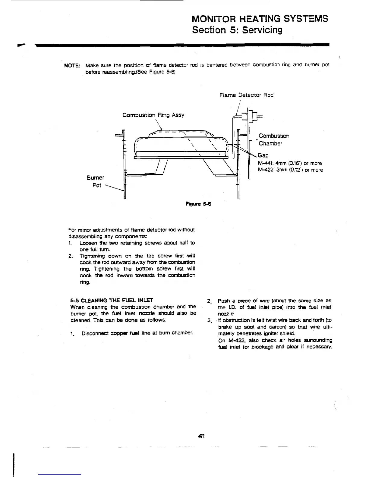 Monitor 441 - 5-5 CLEANING THE FUEL INLET