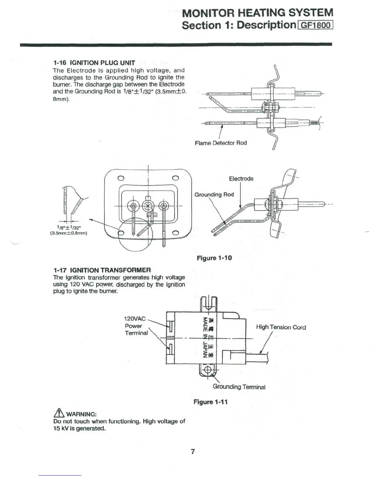 Monitor GF1800 - Ignition Plug Unit (GF1800); Ignition Transformer (GF1800)