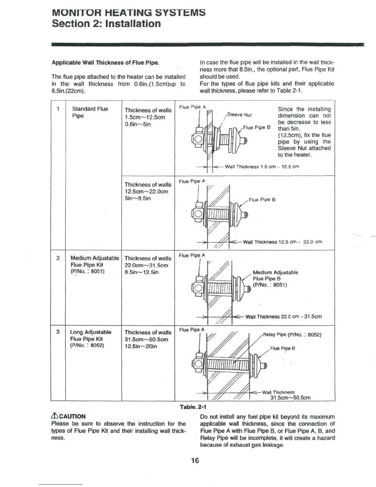 Monitor GF1800 - Applicable Wall Thickness of Flue Pipe