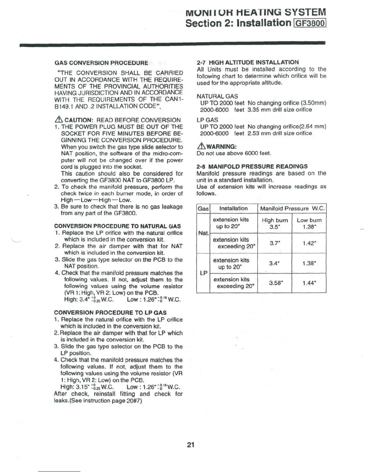 HIGH ALTITUDE INSTALLATION