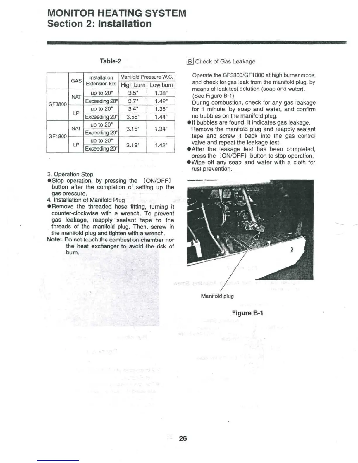 Monitor GF1800 - Operation Stop; Check of Gas Leakage; Installation of Manifold Plug