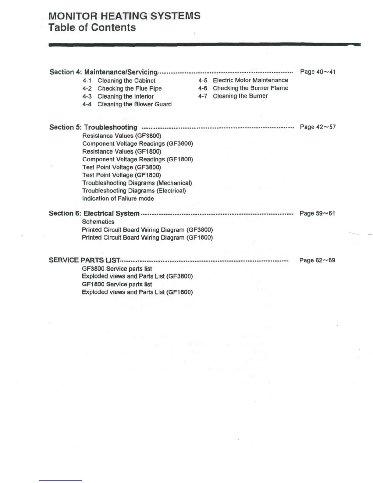 GF3800 Service parts