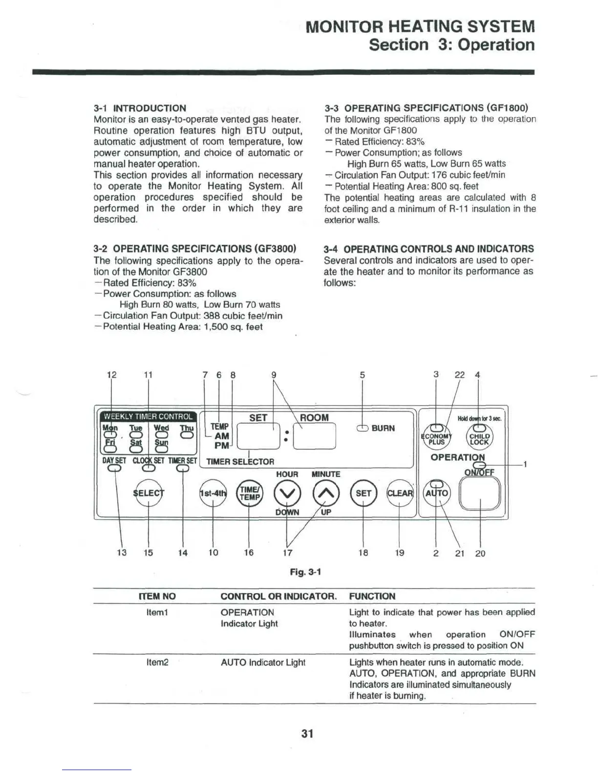 Monitor GF1800 - Introduction; Operating Specifications (GF3800); Operating Specifications (GF1800); Section 3: Operation