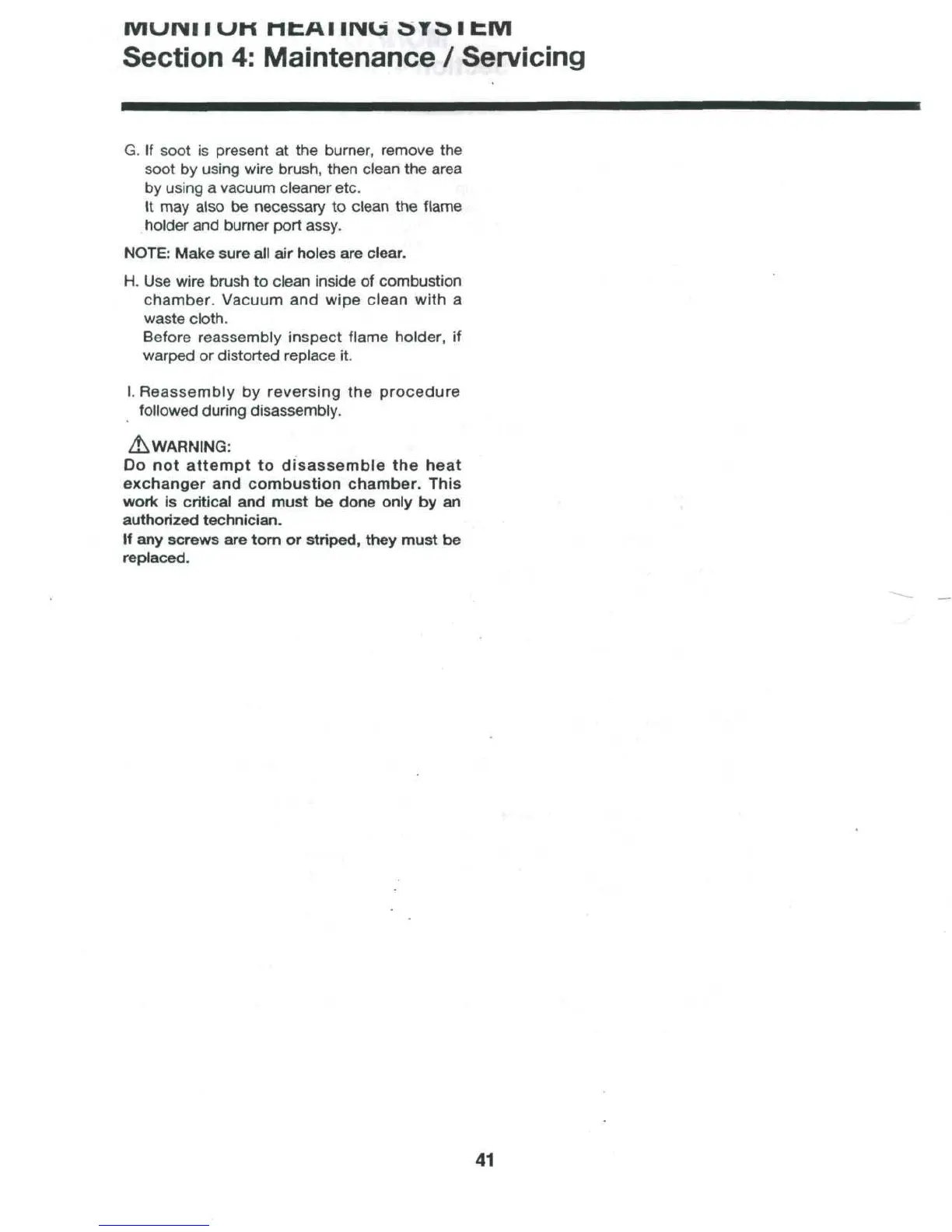 Before reassembly inspect flame