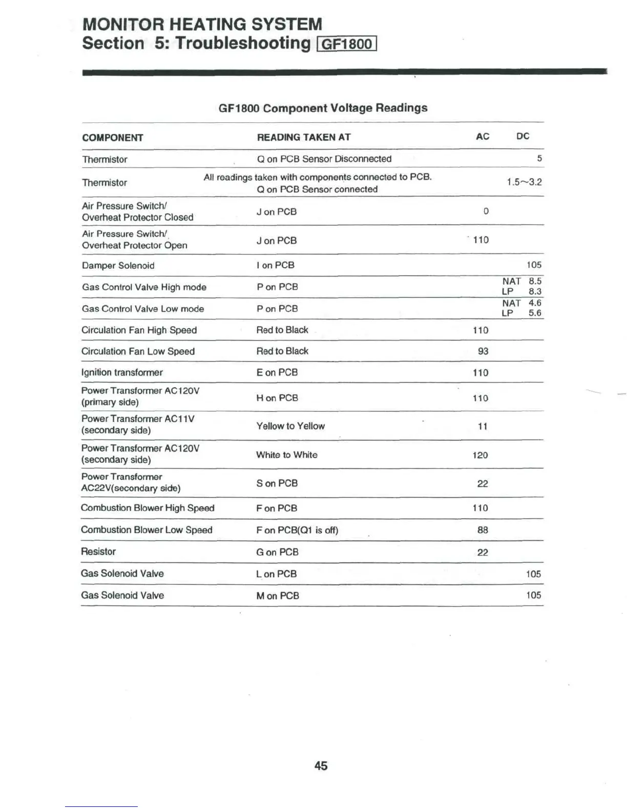 Monitor GF1800 - GF1800 Component Voltage Readings