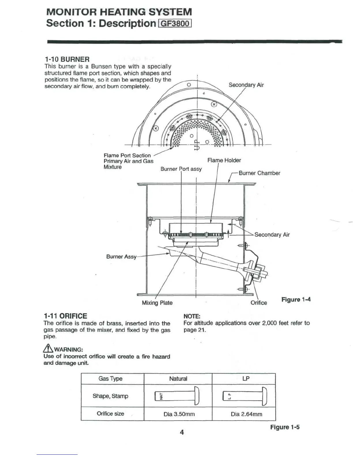 Monitor GF1800 - Burner (GF3800); Orifice (GF3800)
