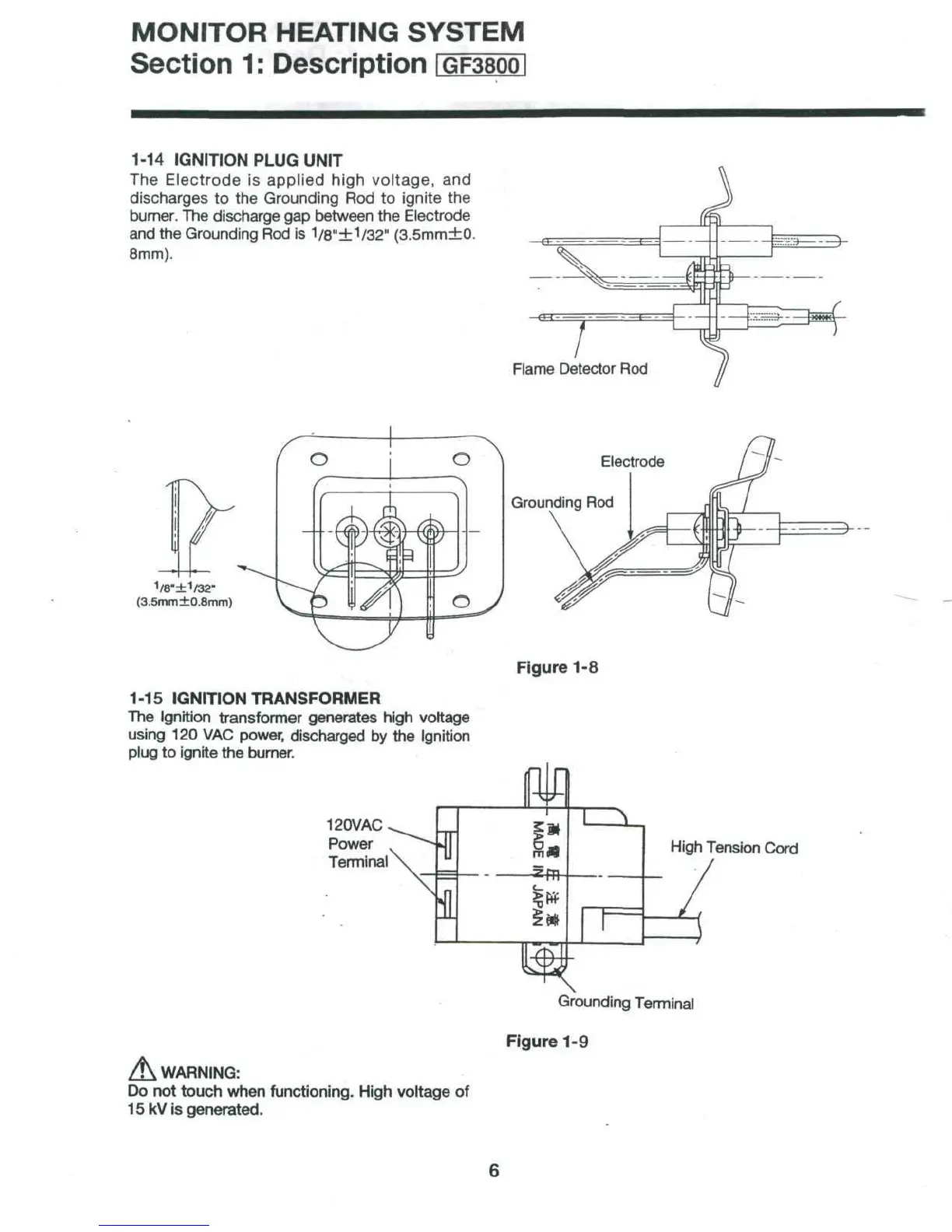 Monitor GF1800 - Ignition Plug Unit (GF3800); Ignition Transformer (GF3800)