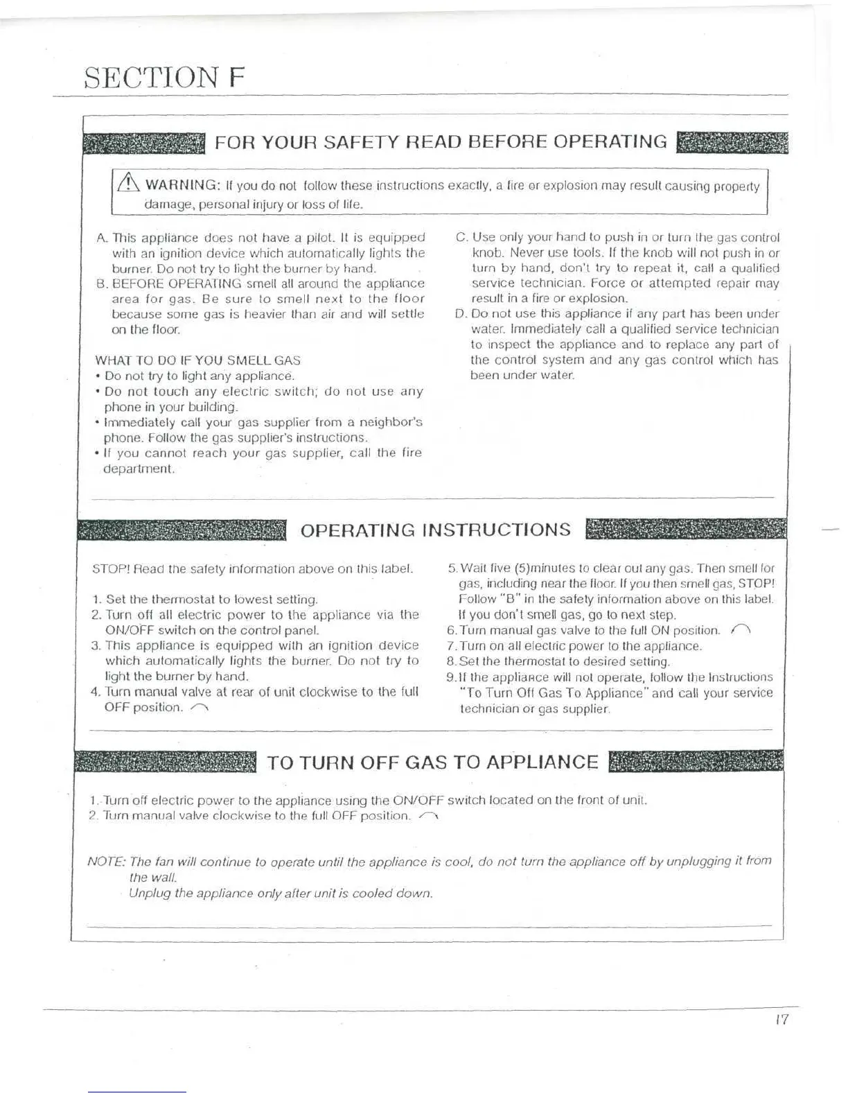 Monitor GF3800 - Section F: Operating Instructions; Safety Warnings and Operating Procedures