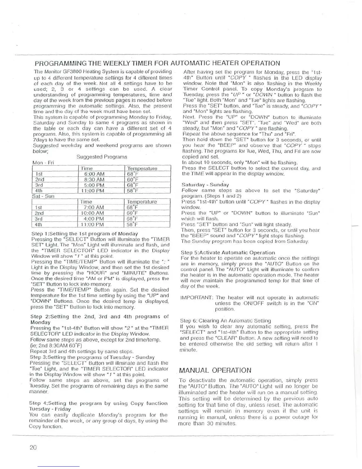 Monitor GF3800 - Manual Operation and Timer Modes
