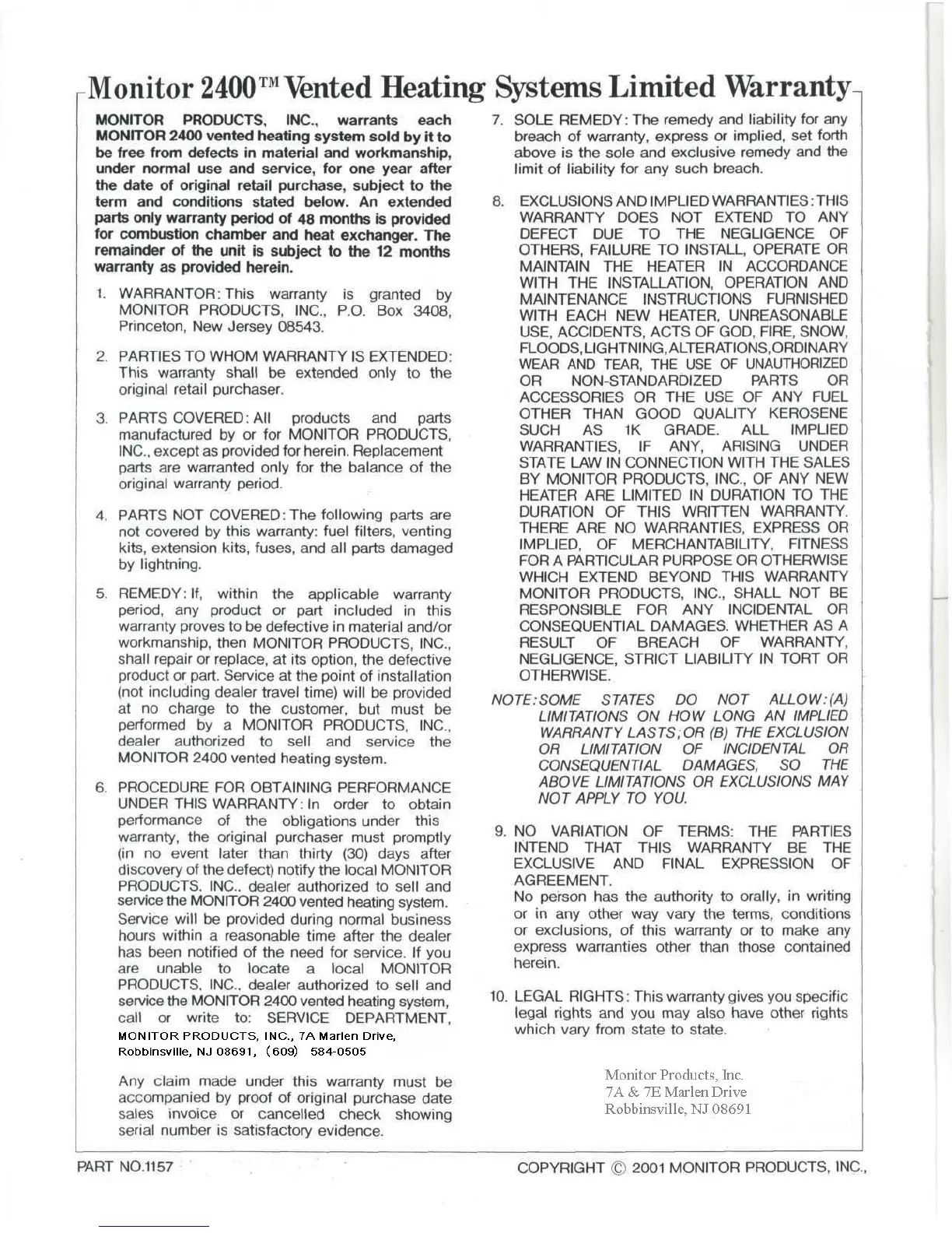 2001 MONITOR PRODUCTS, INC.,