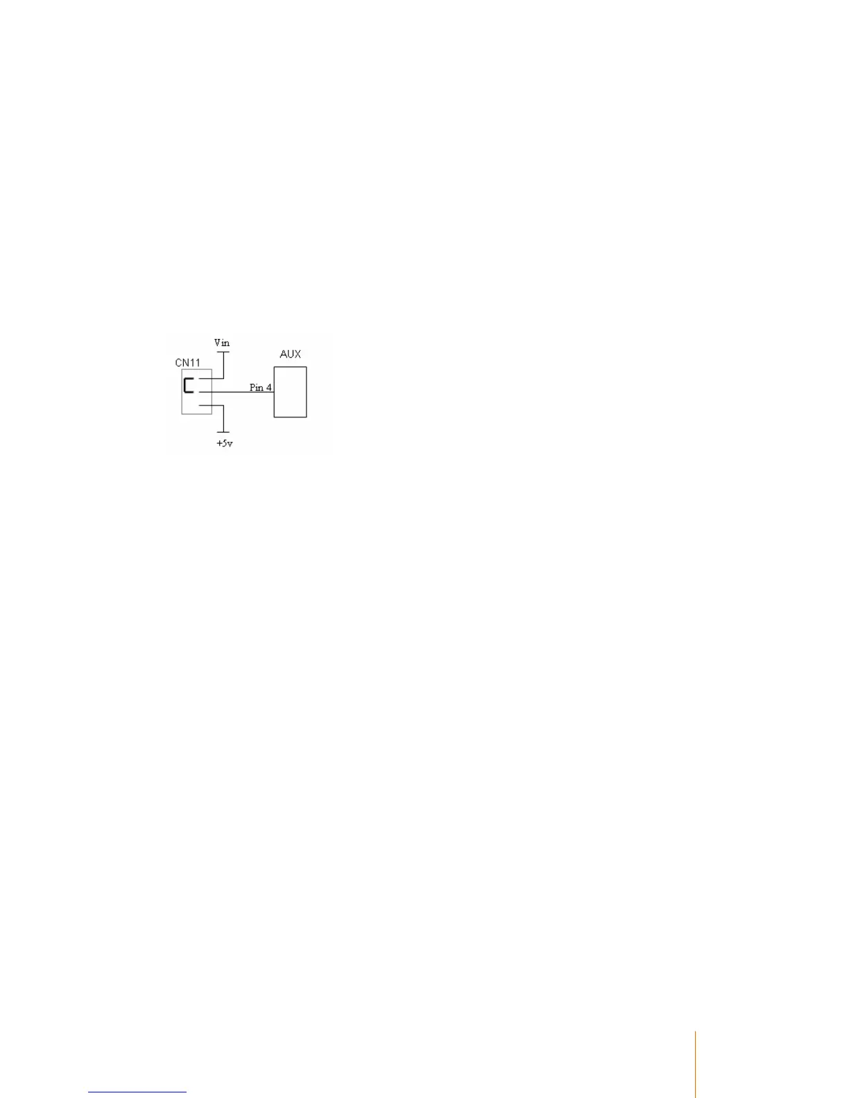 The jumper on CN11 connects pin 4 of the AUX port to either 5v or Vin. By default there is no