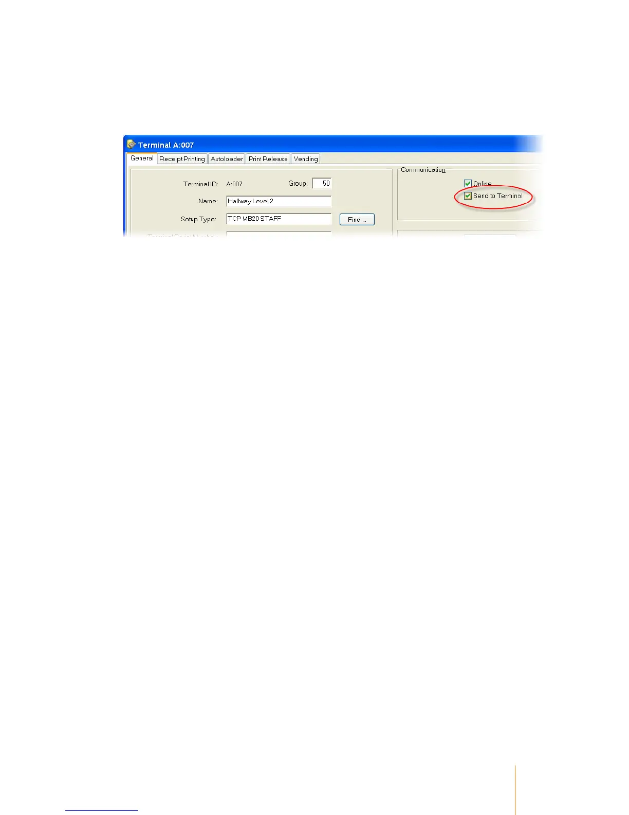(See System Configuration), ‘Send to terminals’ must be ticked in each Primary and Secondary