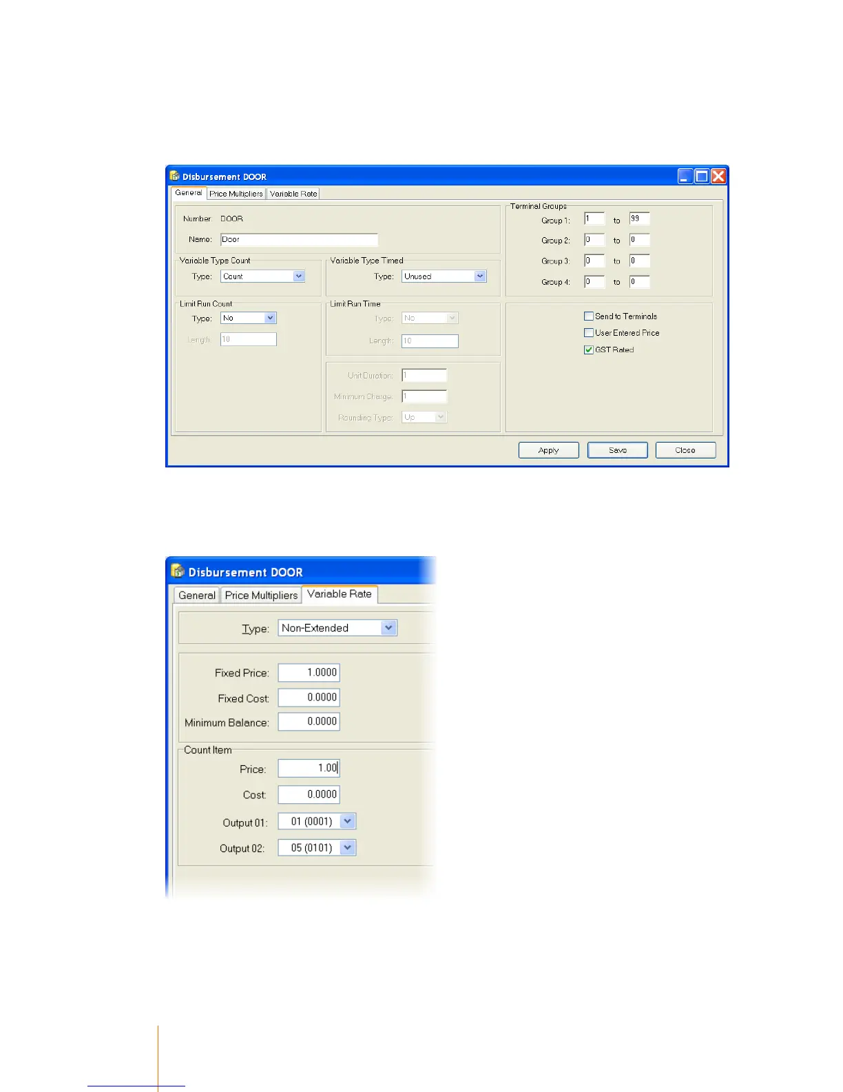 The important options in the DOOR disbursement are the relay settings (Output 1 & 2). The Output