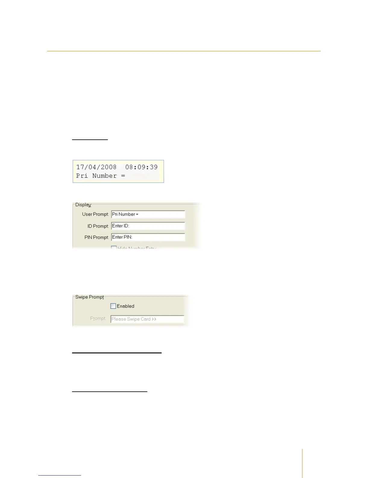 The User Prompt is overridden by the Swipe Prompt in the Card Reader tab: