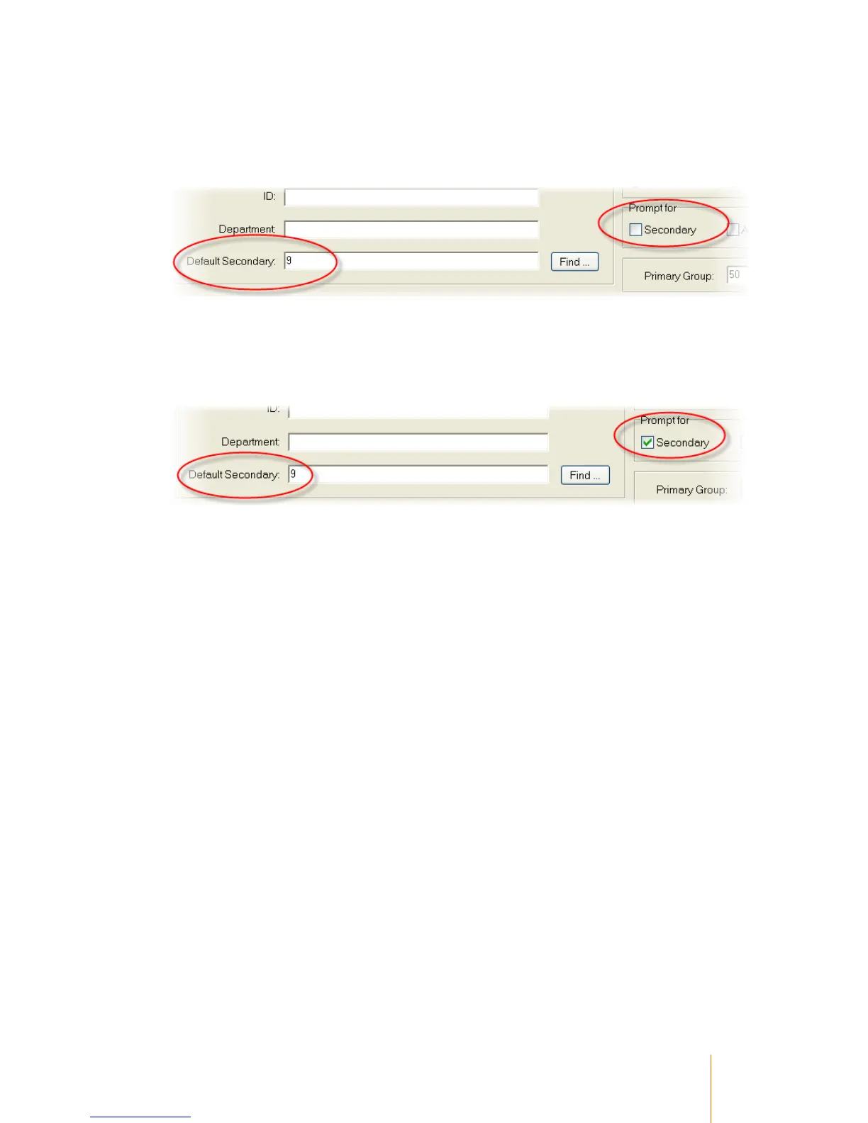 Secondary is not ticked. In this scenario,the user will not be prompted for which Secondary code