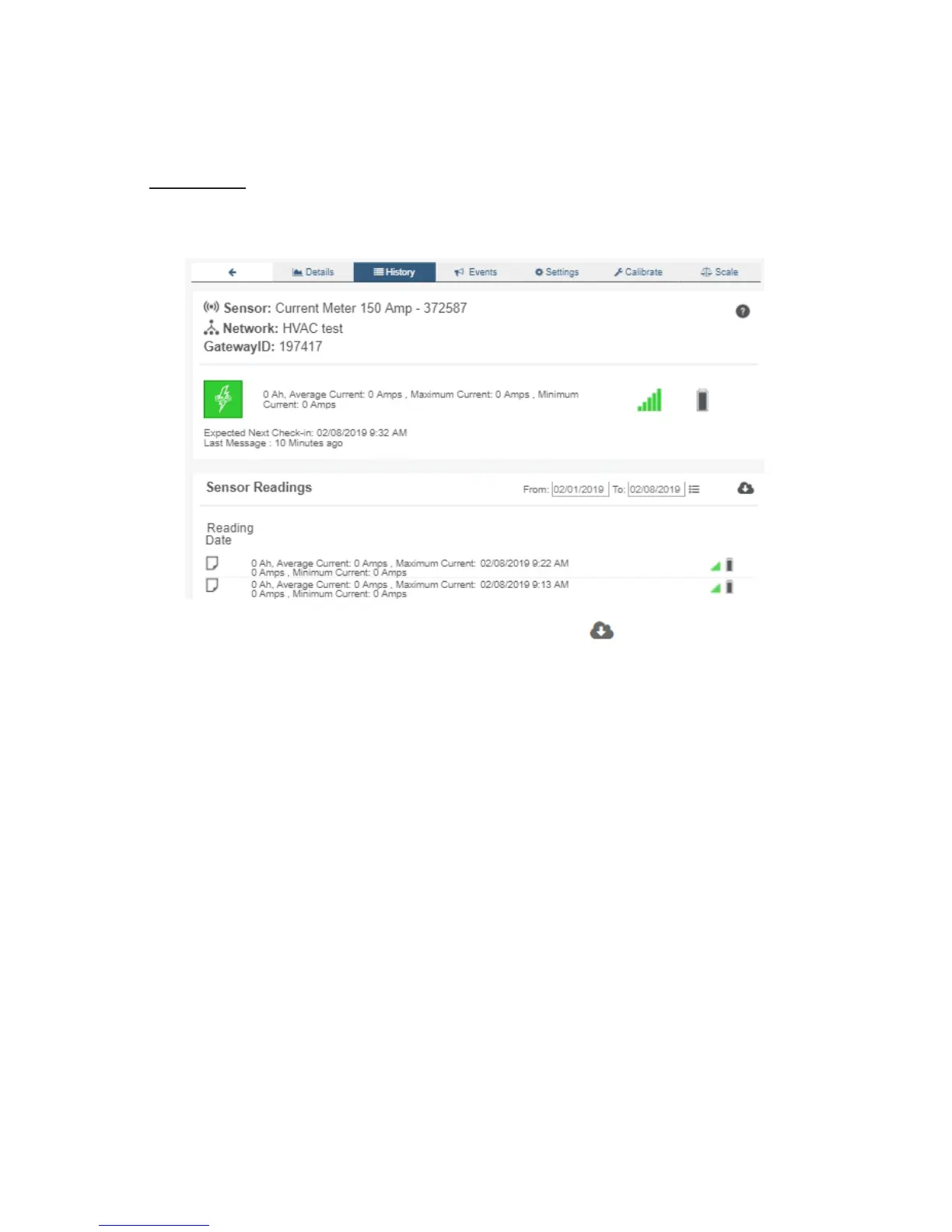 Selecting the “History” tab within the tab bar allows you to view the meter’s data history as