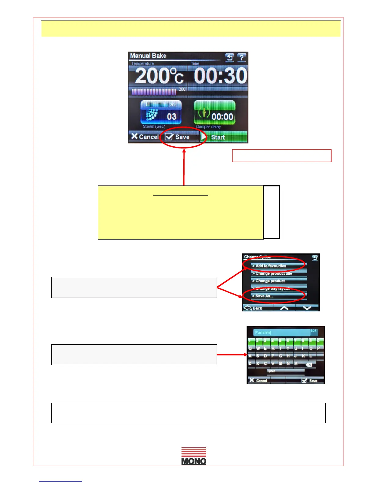 BAKE, WHEN STOP IS TOUCHED “SAVE” WILL APPEAR
