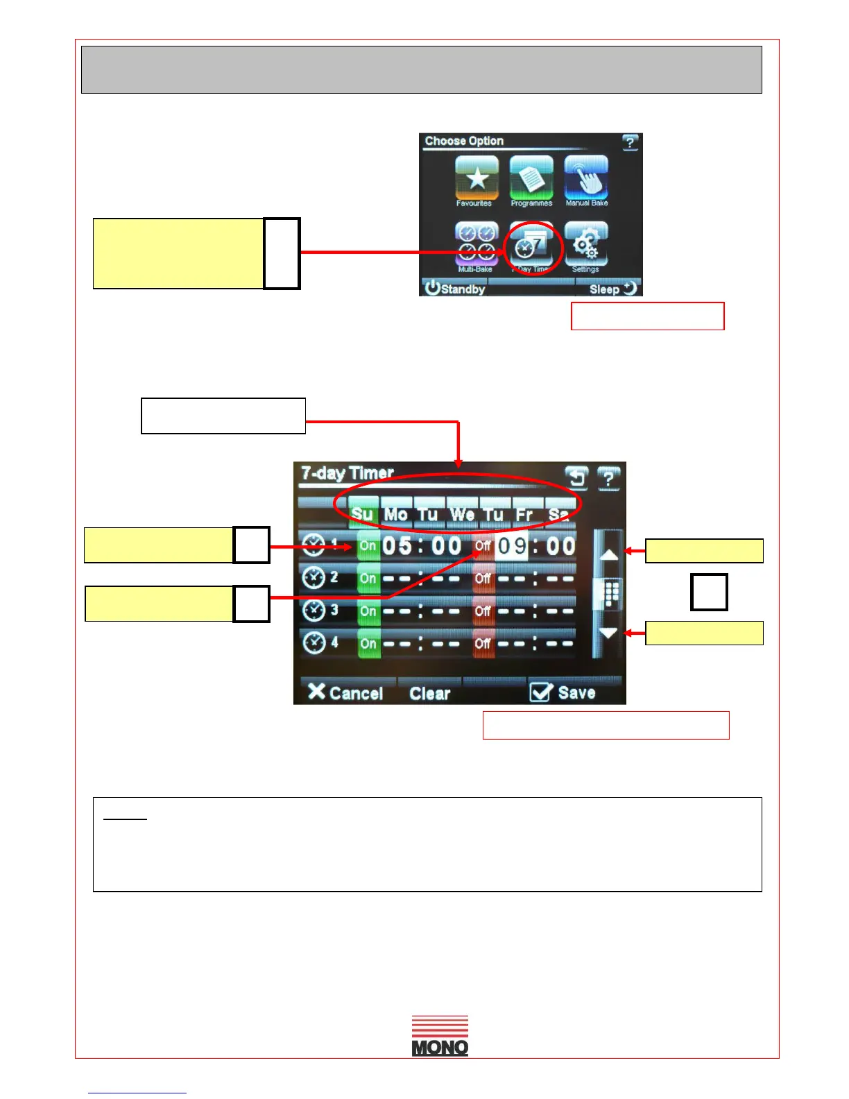 Touch “clear to clear the settings on the day shown.