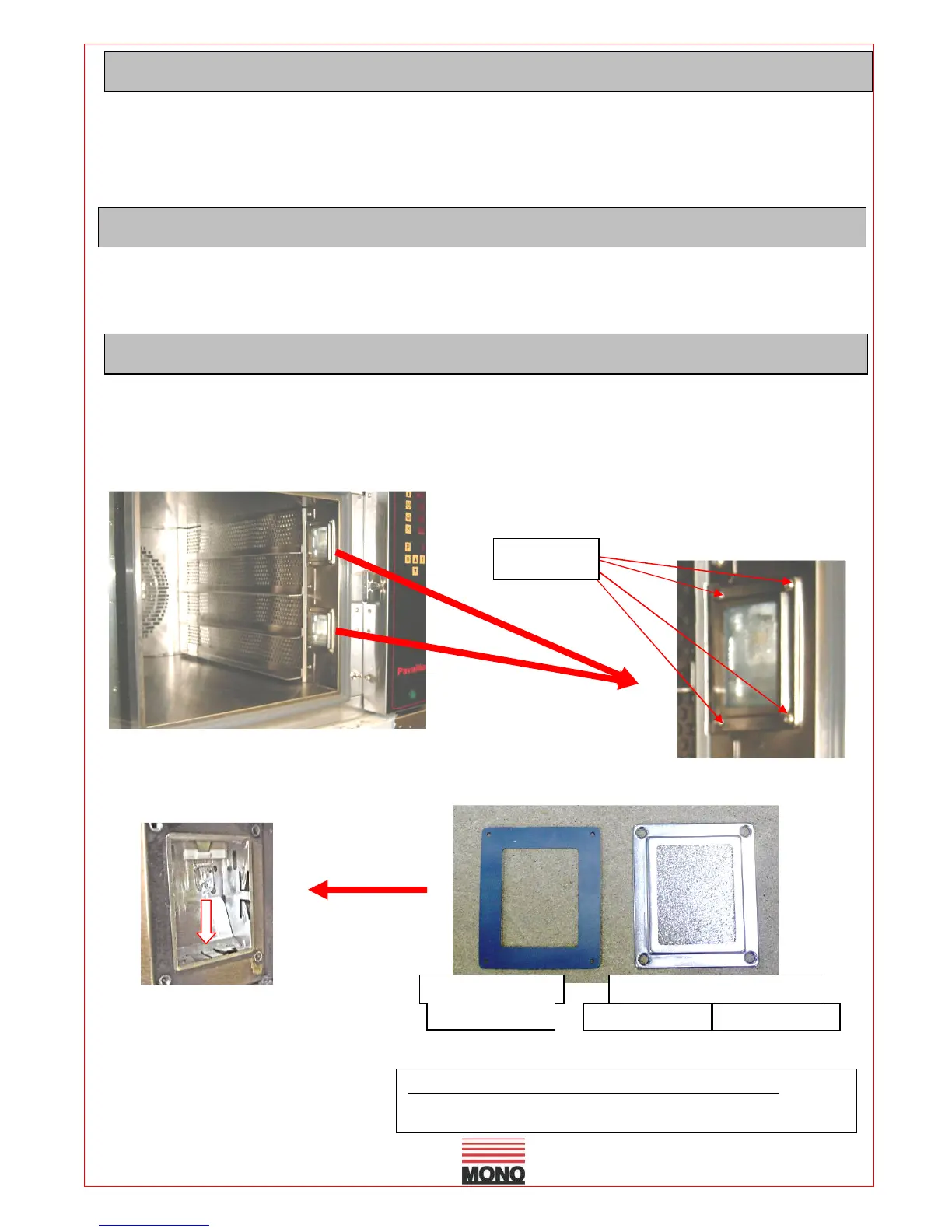 • Refit glass front, taking care that gasket is in position around stainless steel frame.
