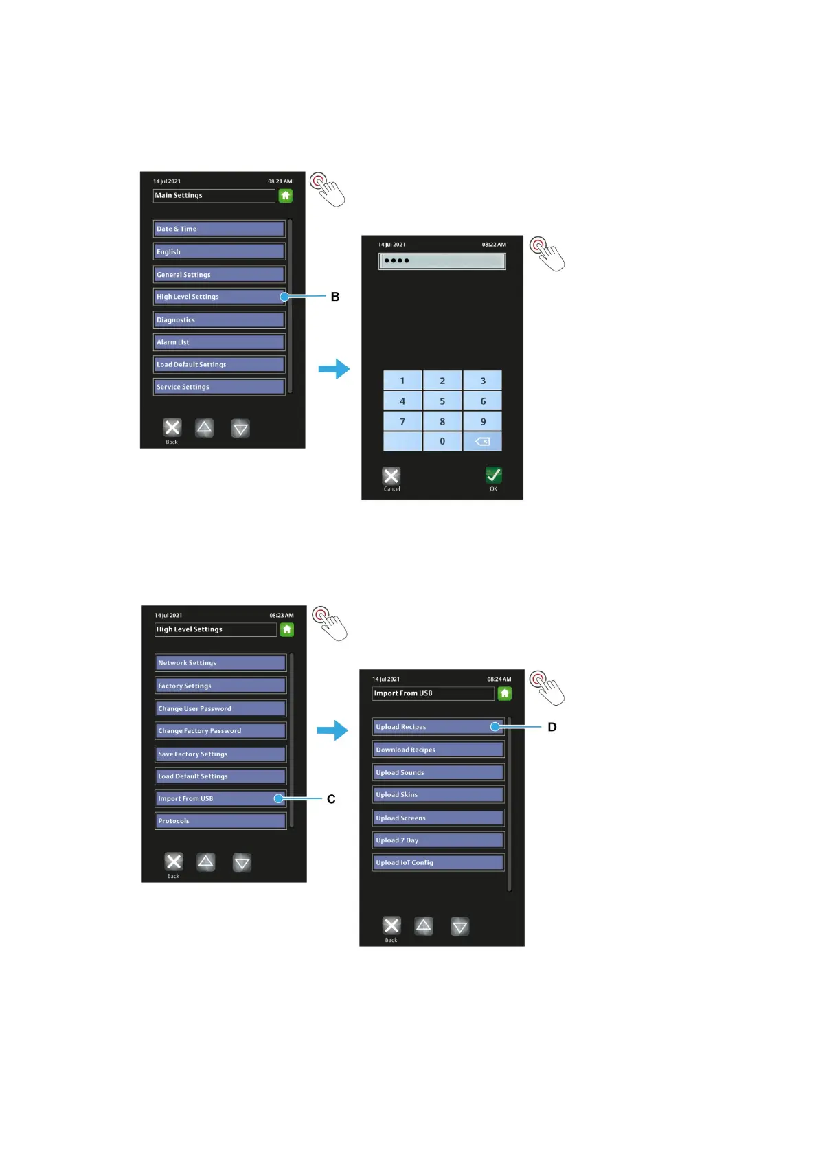 5. Enter the High Level Settings password, and then touch OK.