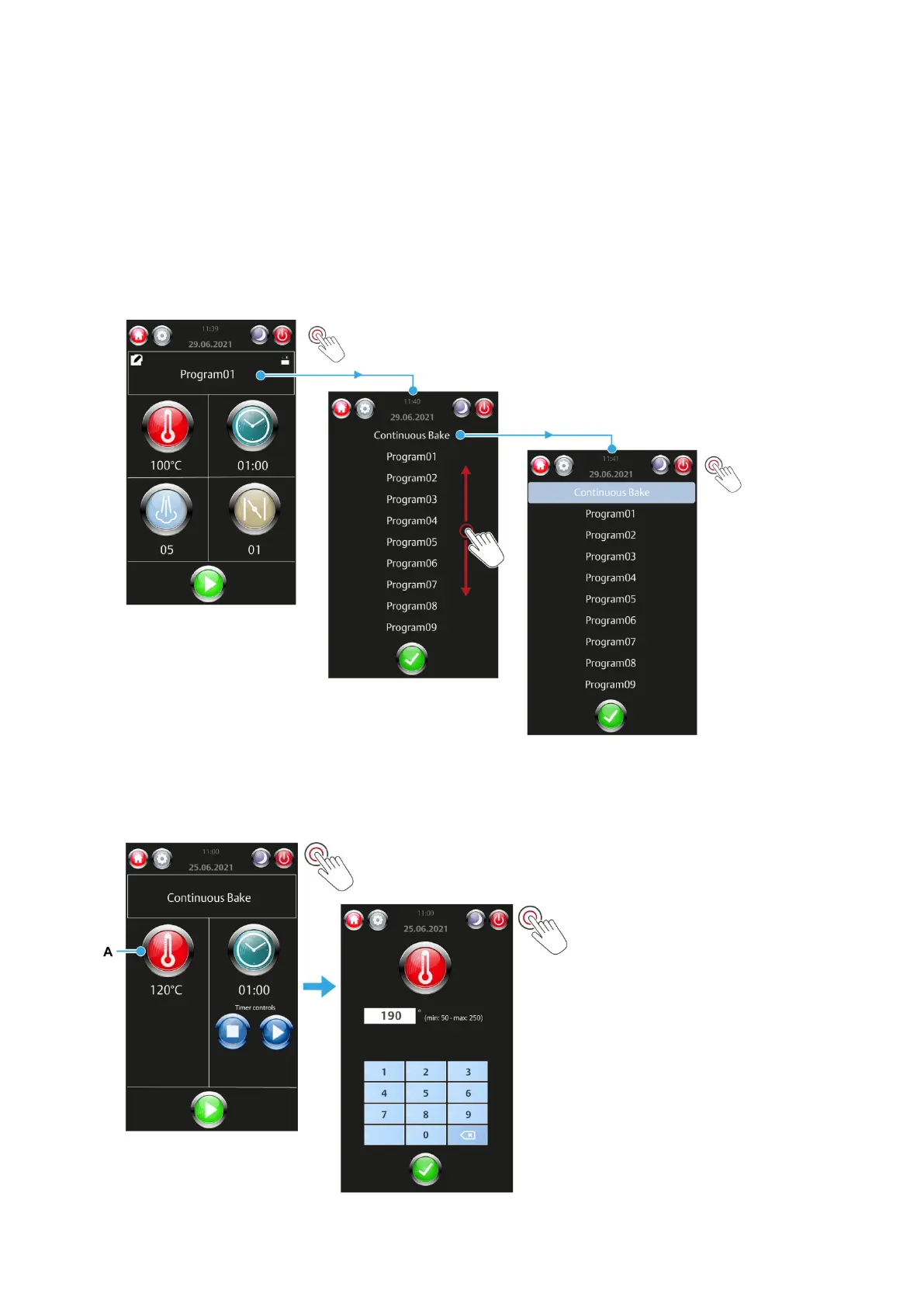 (b) Use the keypad to edit the temperature, and then touch the Tick () button.
