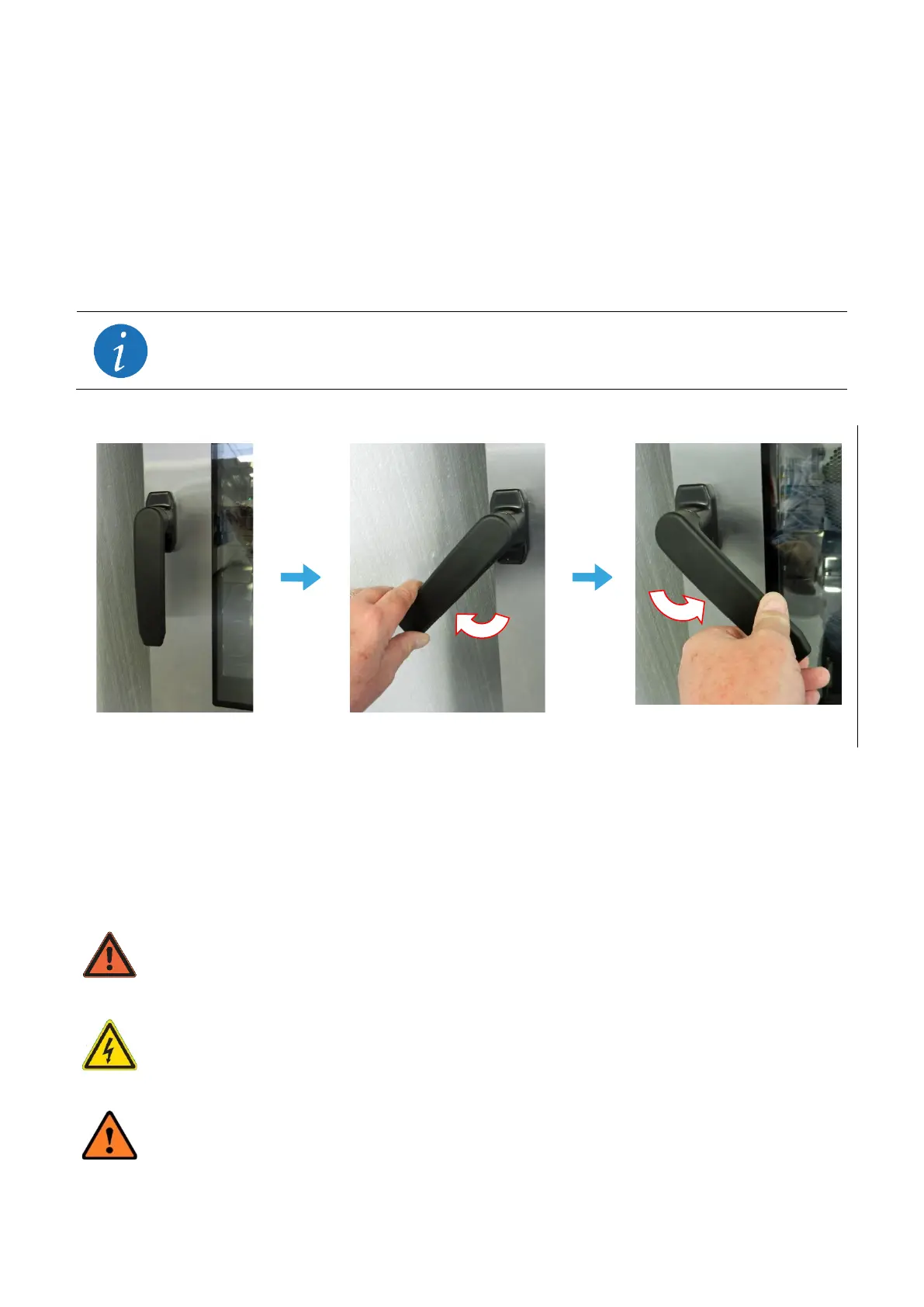 1. Turn the handle left to release the door catch halfway.