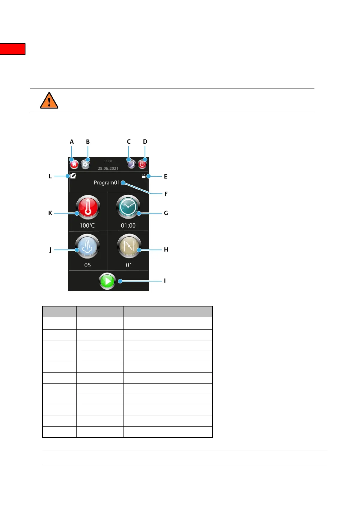 B Settings Access to oven settings.