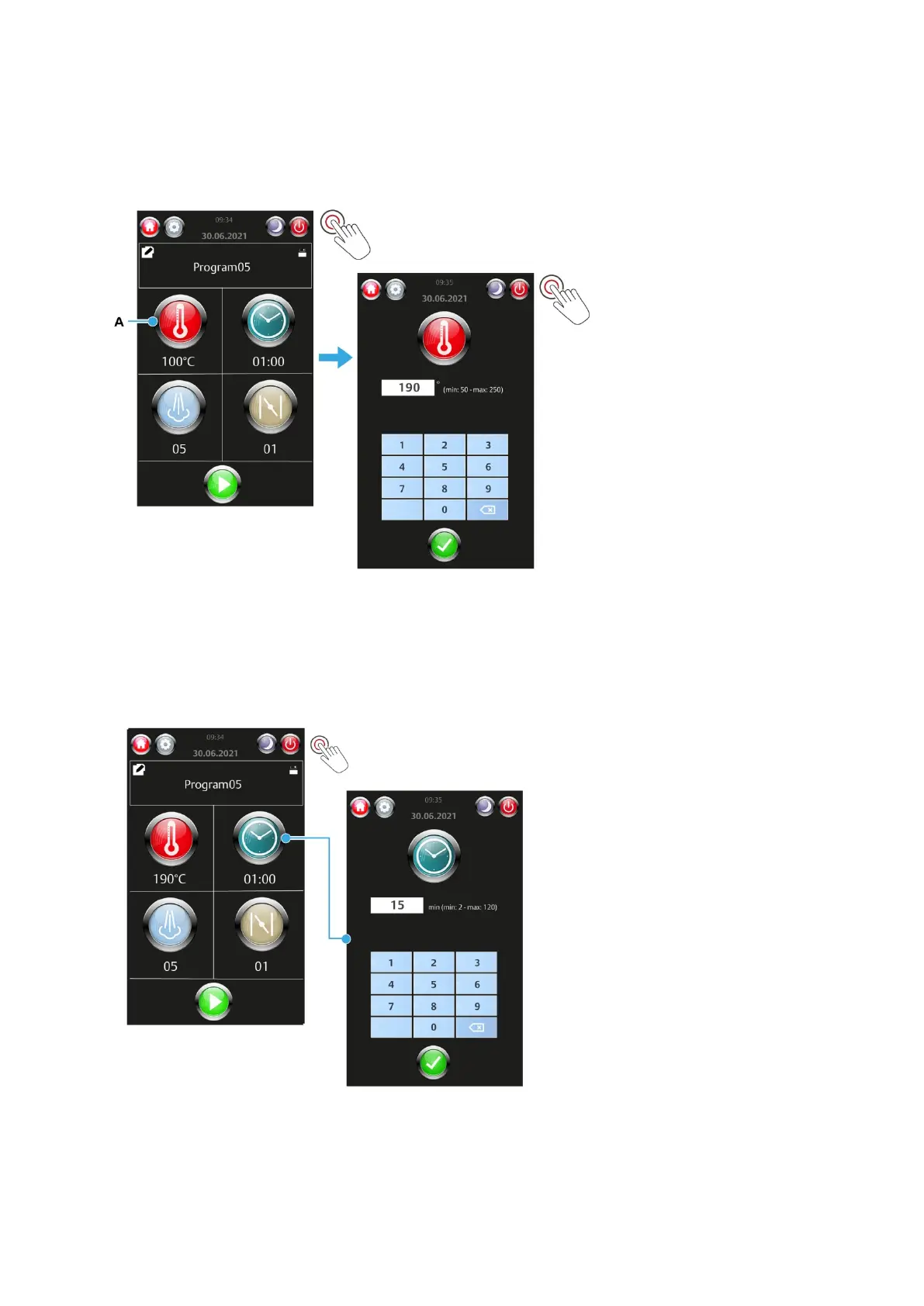 (b) Use the keypad to edit the temperature, and then touch the Tick () button.