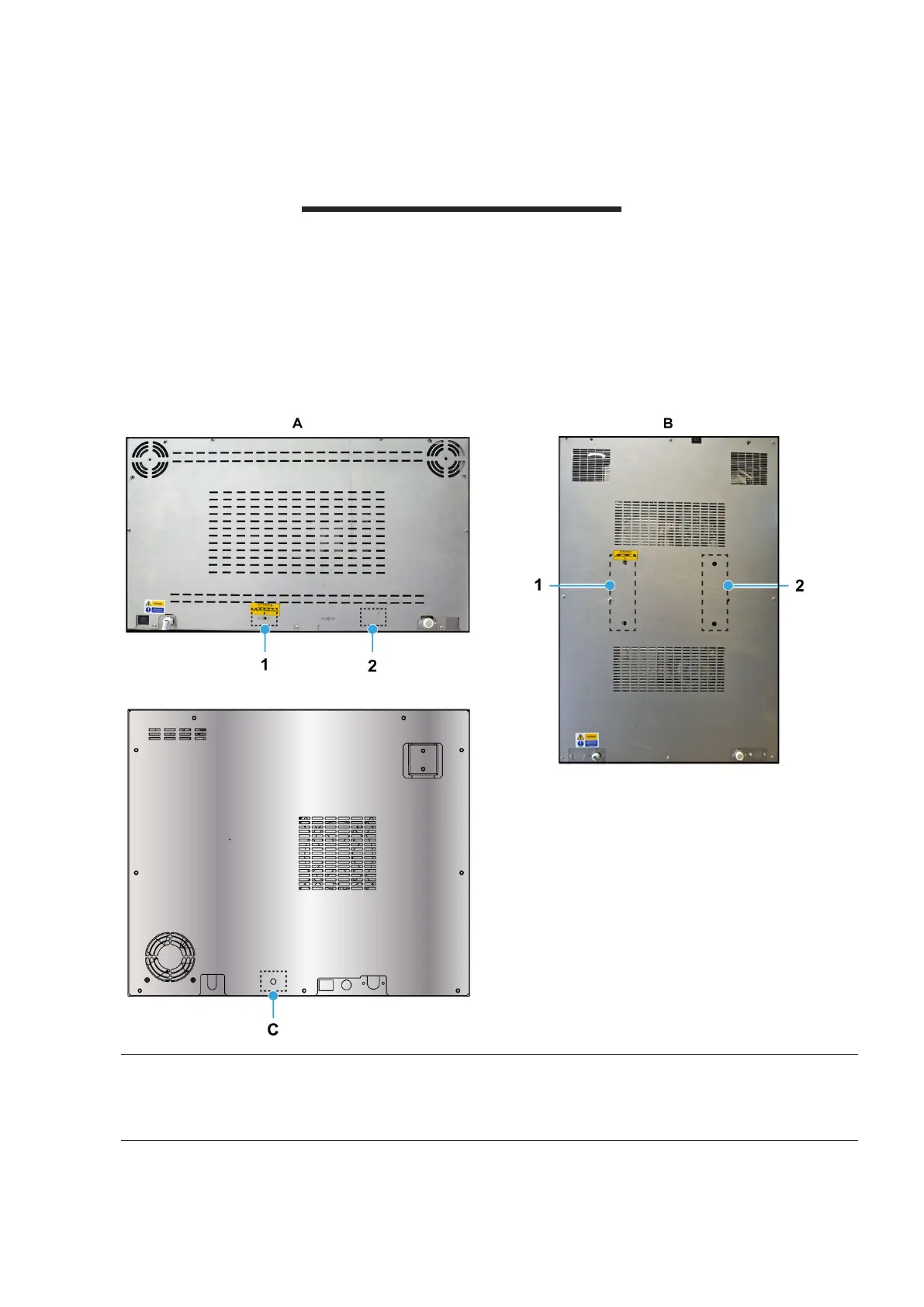 A. Rear panel of 4/5-tray oven. The reset button hole can be at position 1 or 2 depending on the model