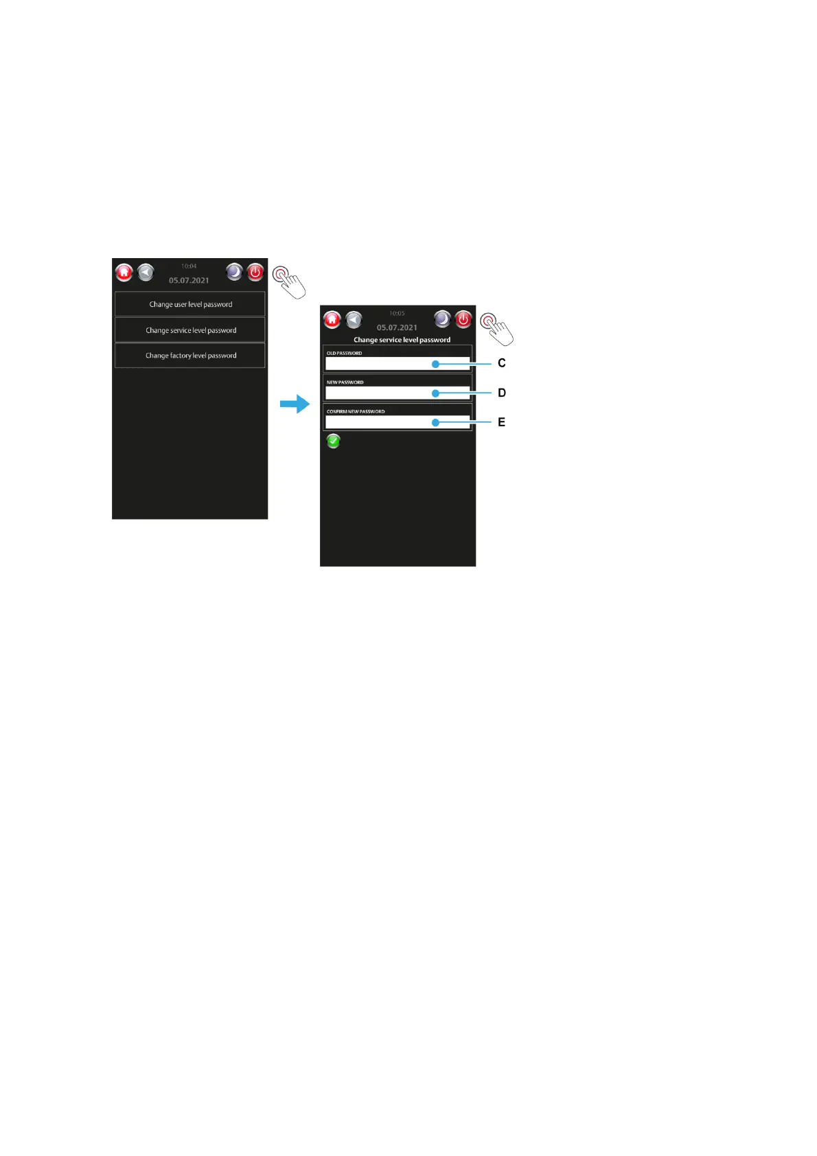 (c) Touch the Confirm New Password box (E), and enter the new password again.