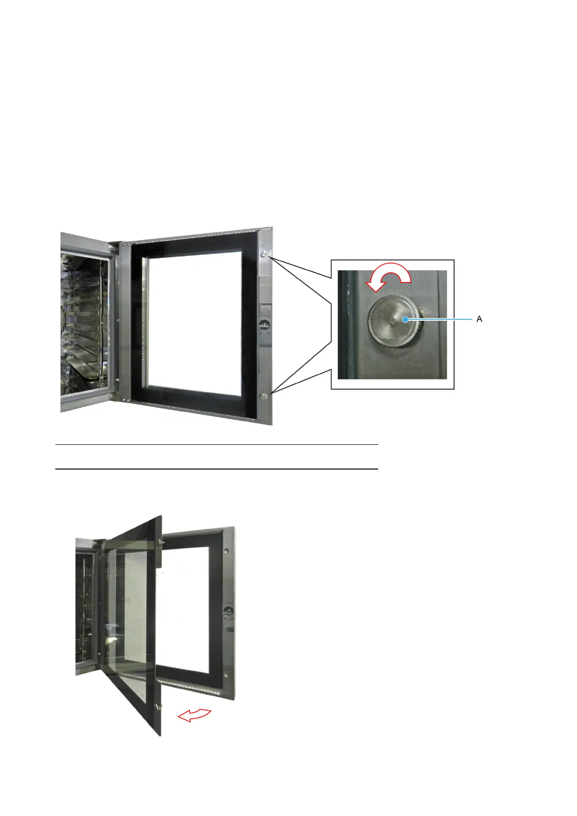 The inner door glass is hinged to enable the cleaning of inner surfaces.
