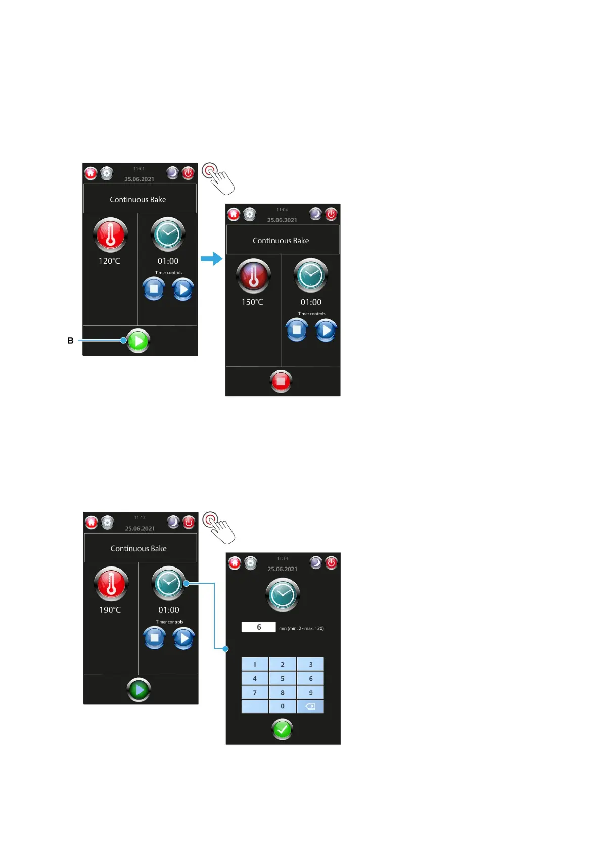 This timer has no connection to the oven controls whilst running the Continuous Bake program. The timer
