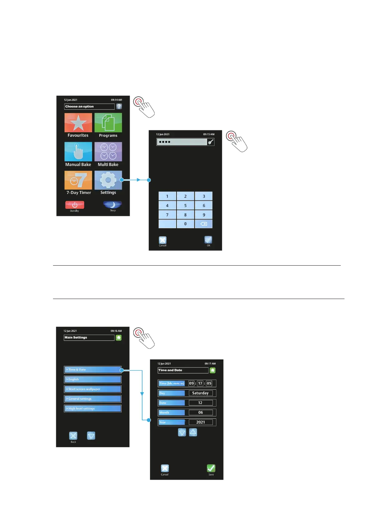 2. Enter the Oven Settings password, and then touch the OK () button.