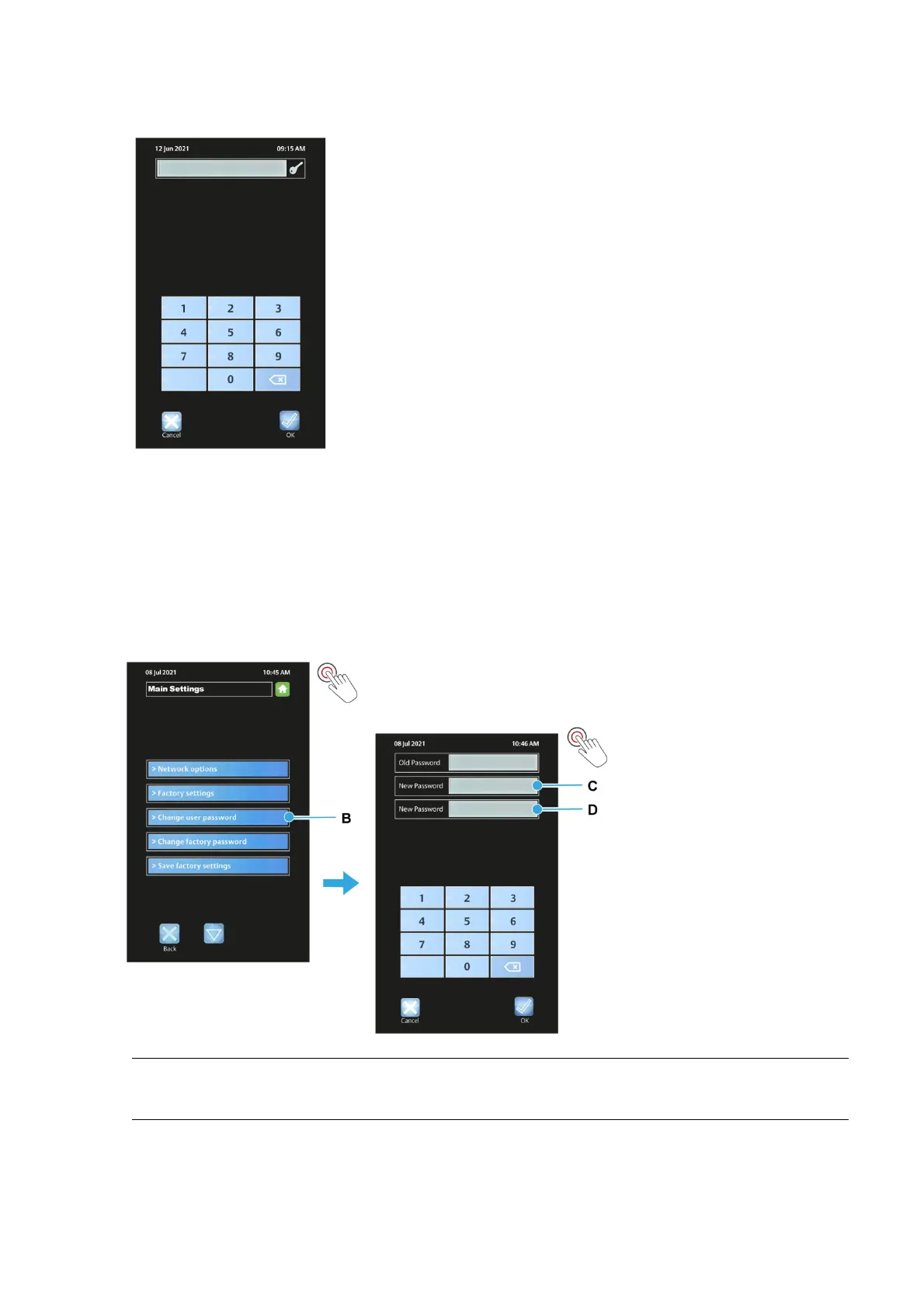 (c) Touch the second New Password box (D), and enter the new password again.