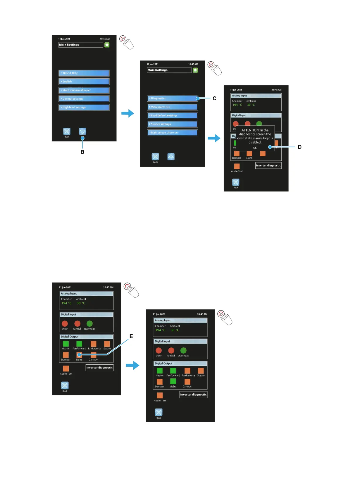 3. Touch the Back button to exit diagnostics mode.