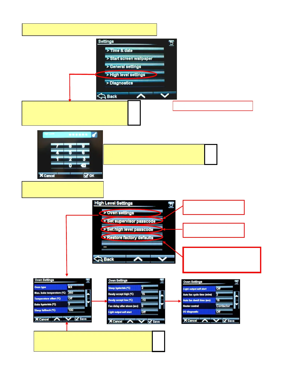 TOUCH “HIGH LEVEL SETTINGS” AND