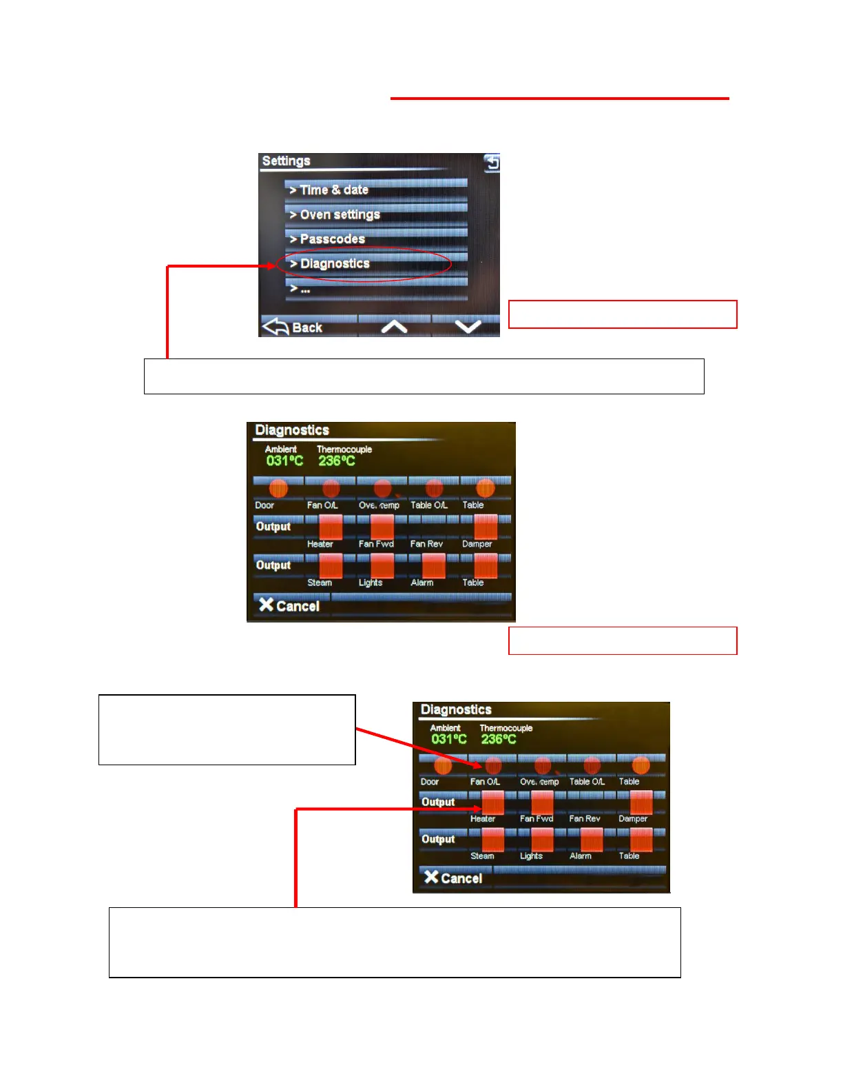 TOUCH “DIAGNOSTICS” AND THE FOLLOWING SCREEN WILL APPEAR.