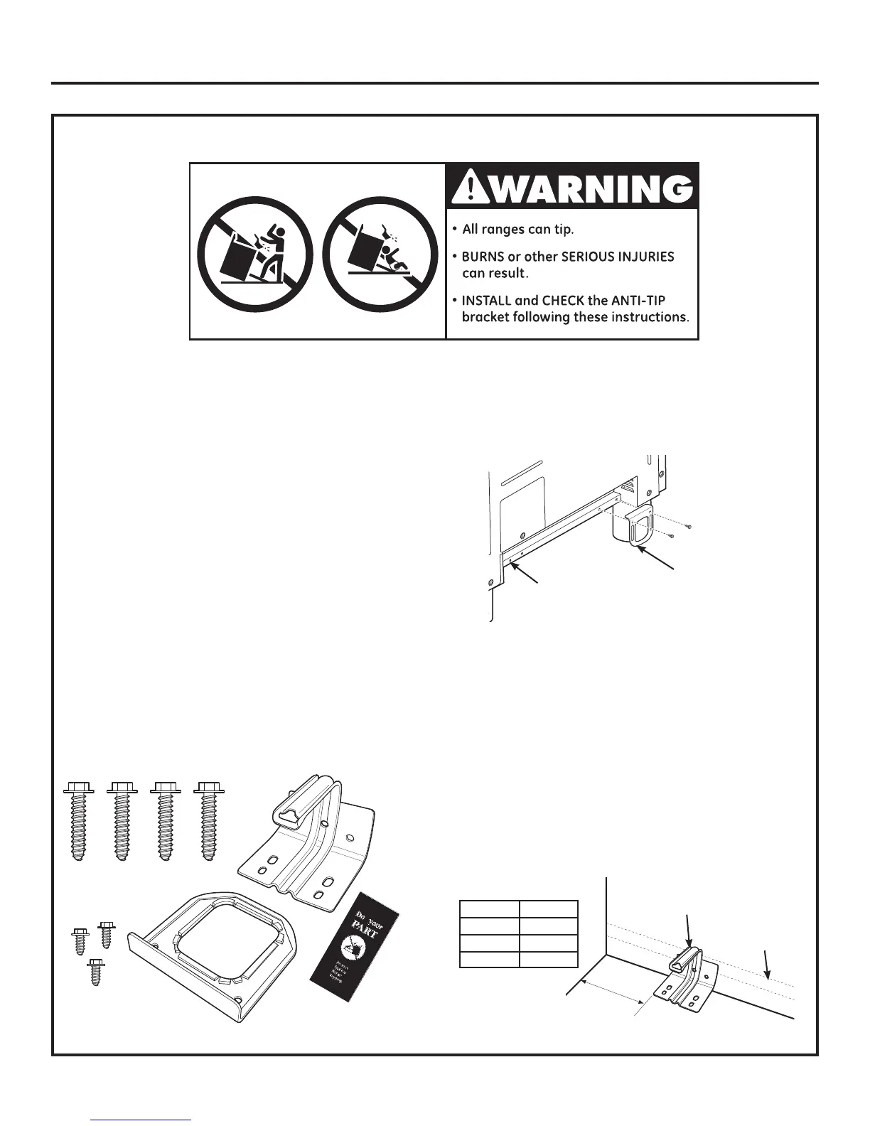 If your range has no anti-tip bracket, call 1.800.626.8774