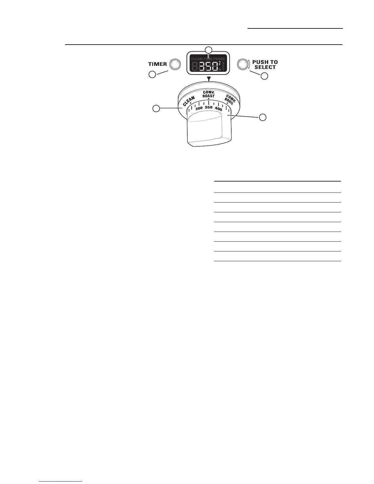 1 Oven Mode Selector – Turn outer ring to select: