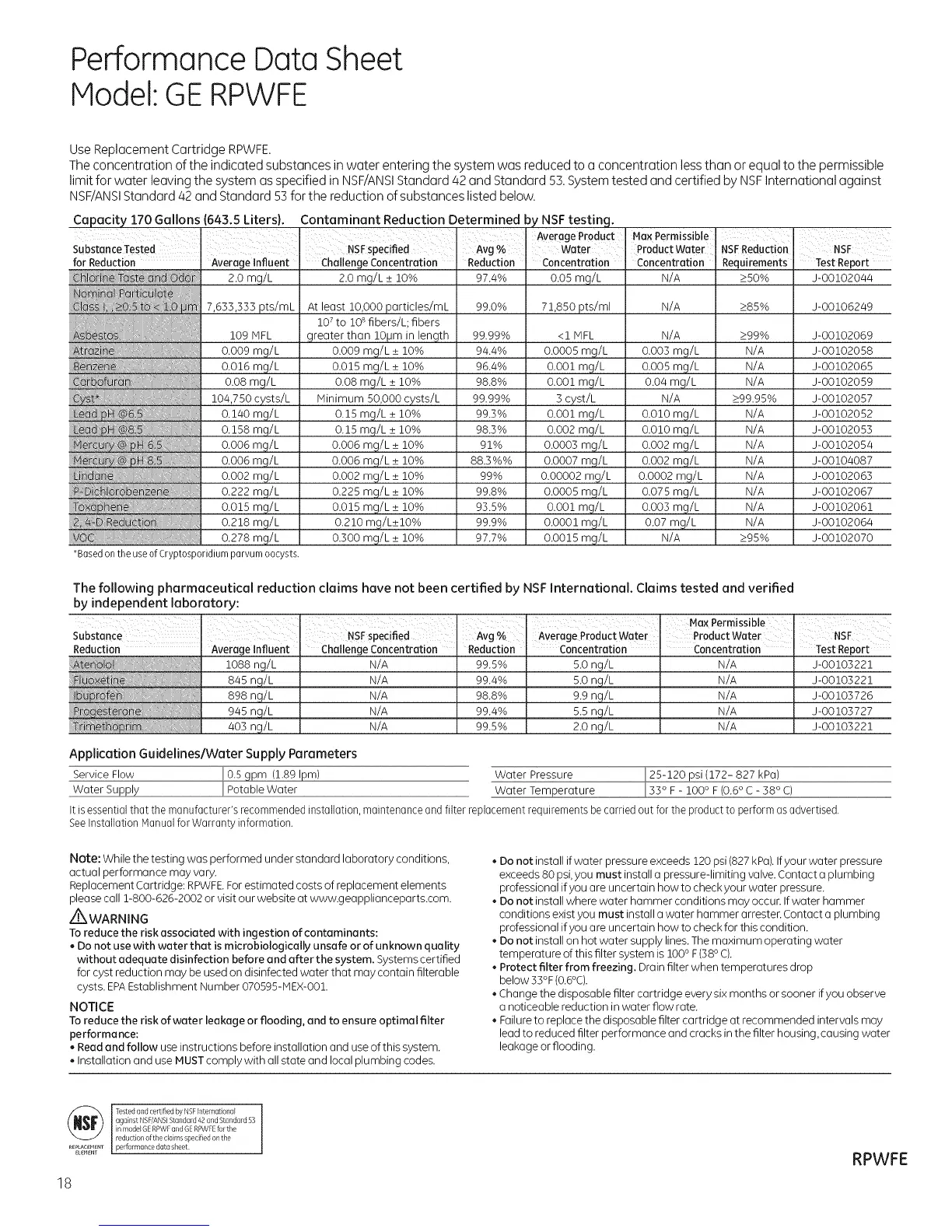 limit for water leaving the system as specified in NSF/ANSIStandard/42 and Standard 53.Systemtested and certified by NSFInternational against
