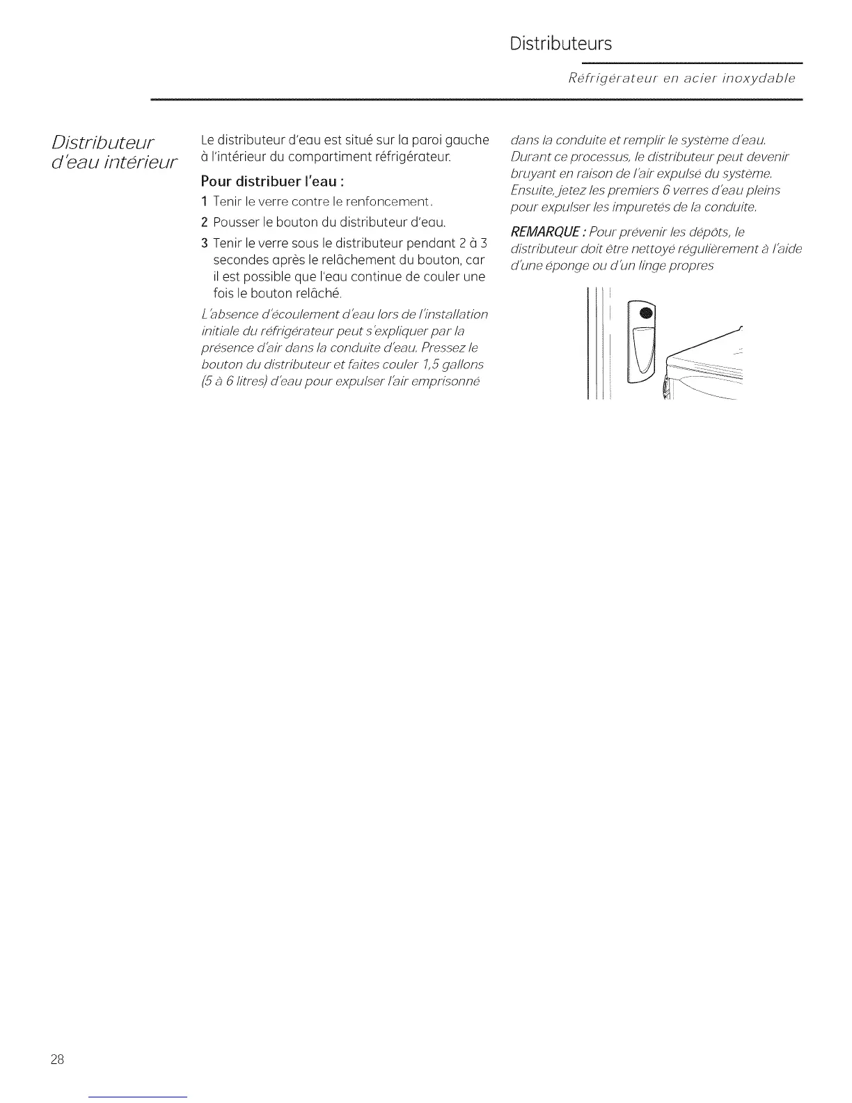Le distributeur d'eau est situ6 sur la paroi gauche