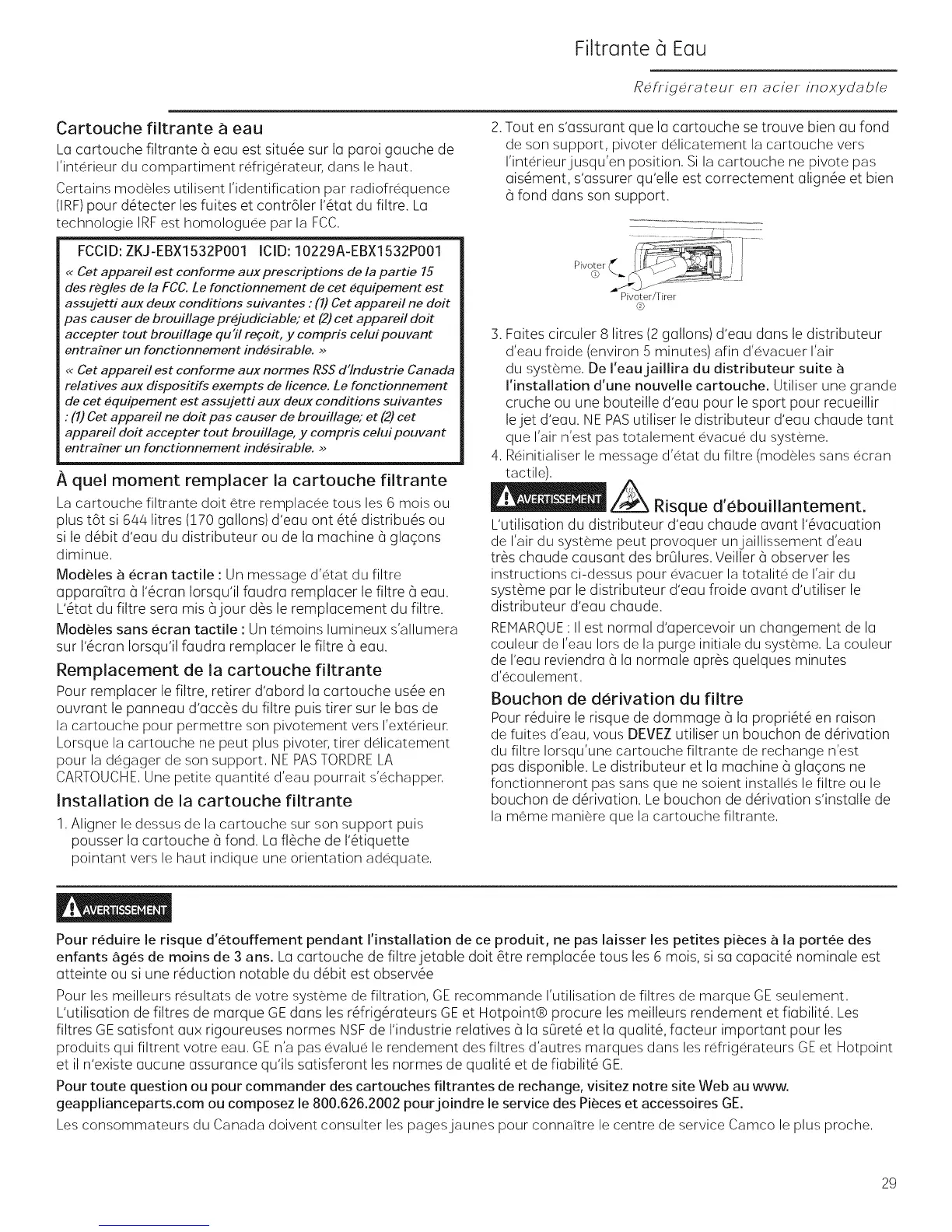 L'utilisation de filtres de marque GE dons les r_frig_rateurs GE et Hotpoint® procure les meilleurs rendement et fiabilit& Les