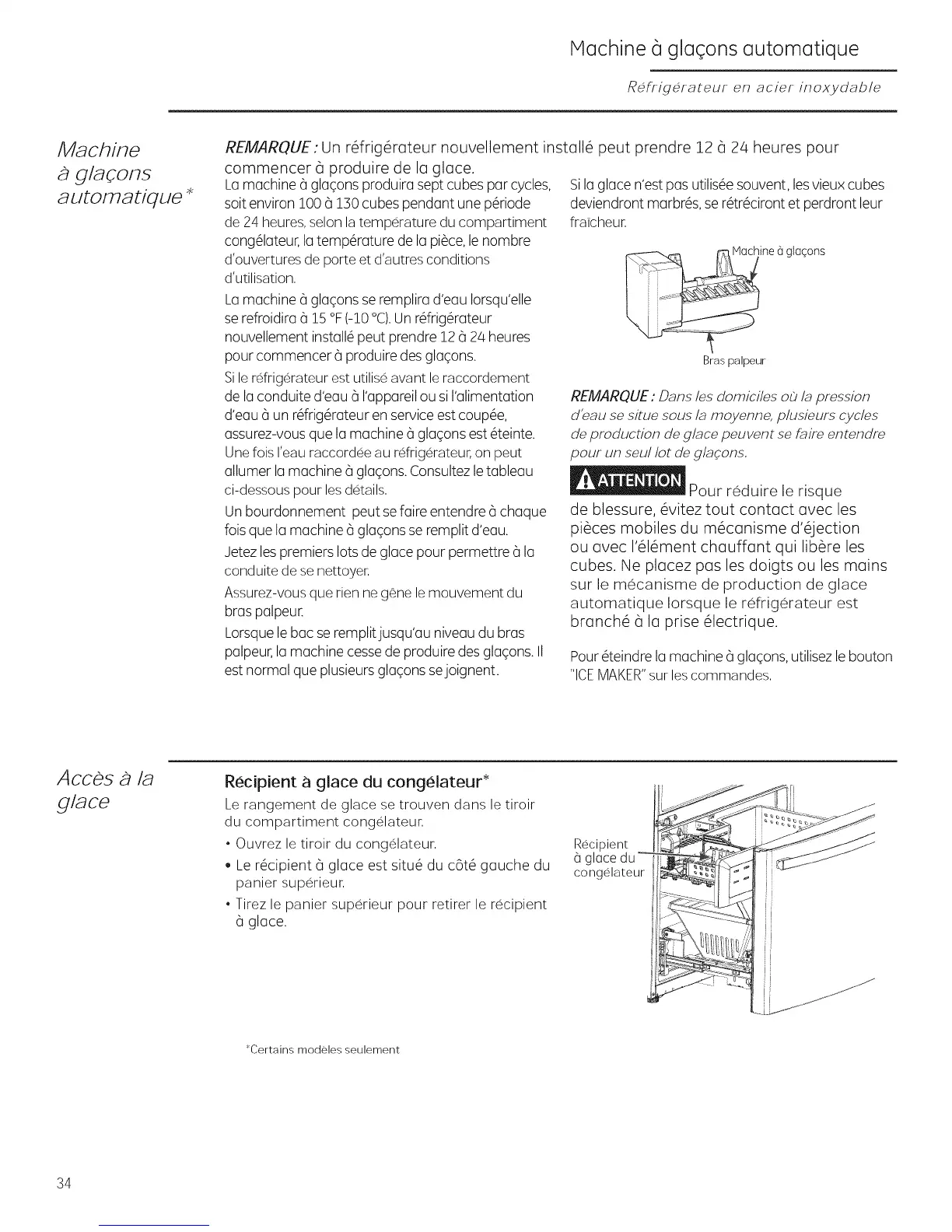 o Le r6cipient 6 glace est situ6 du c6t6 gauche du