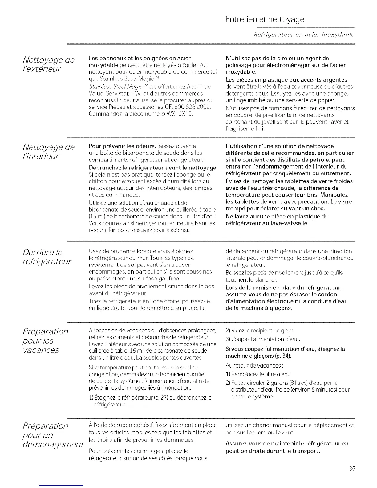 service Pieces et accessoires GE, 800.626.2002.