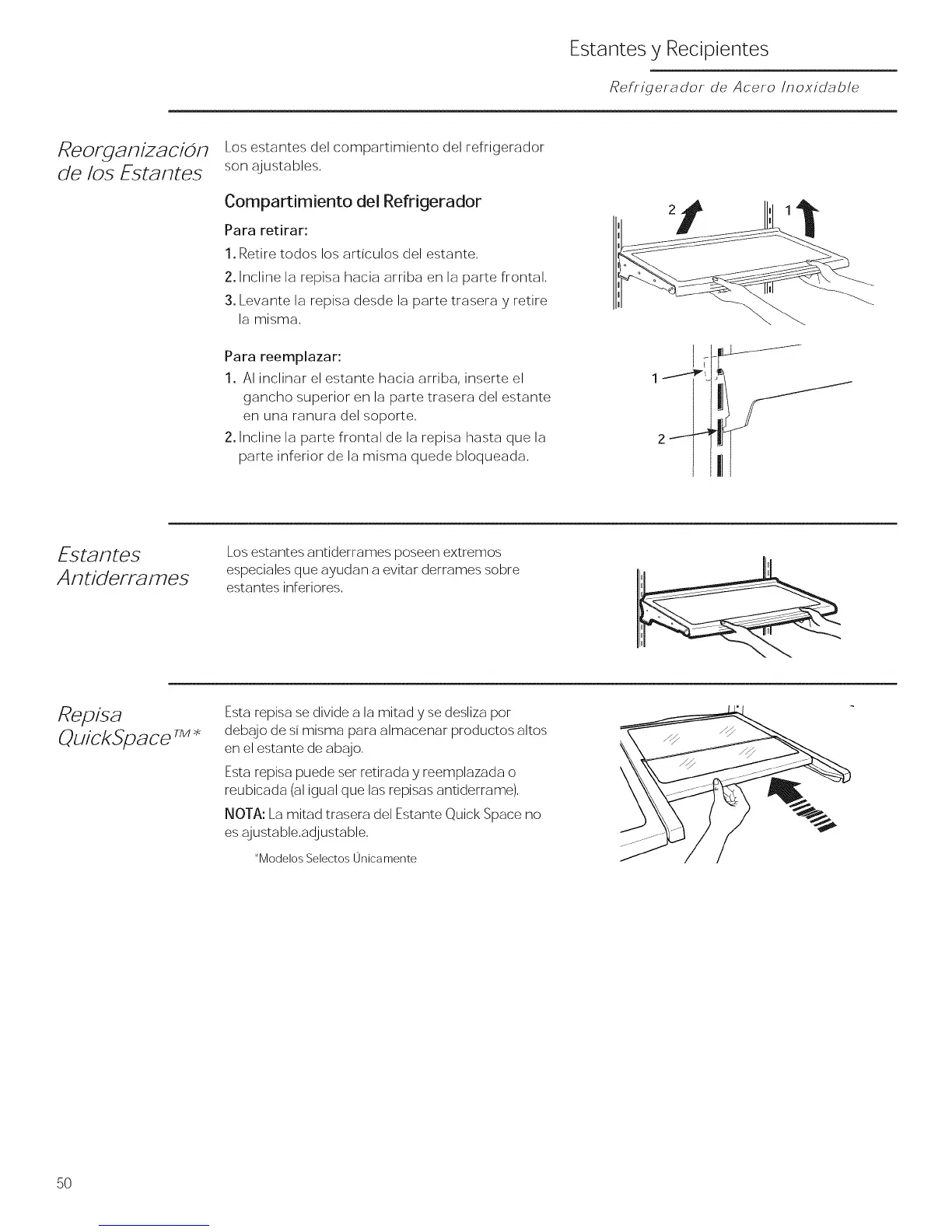 NOTA: La mitad trasera del Estante Quick Space no