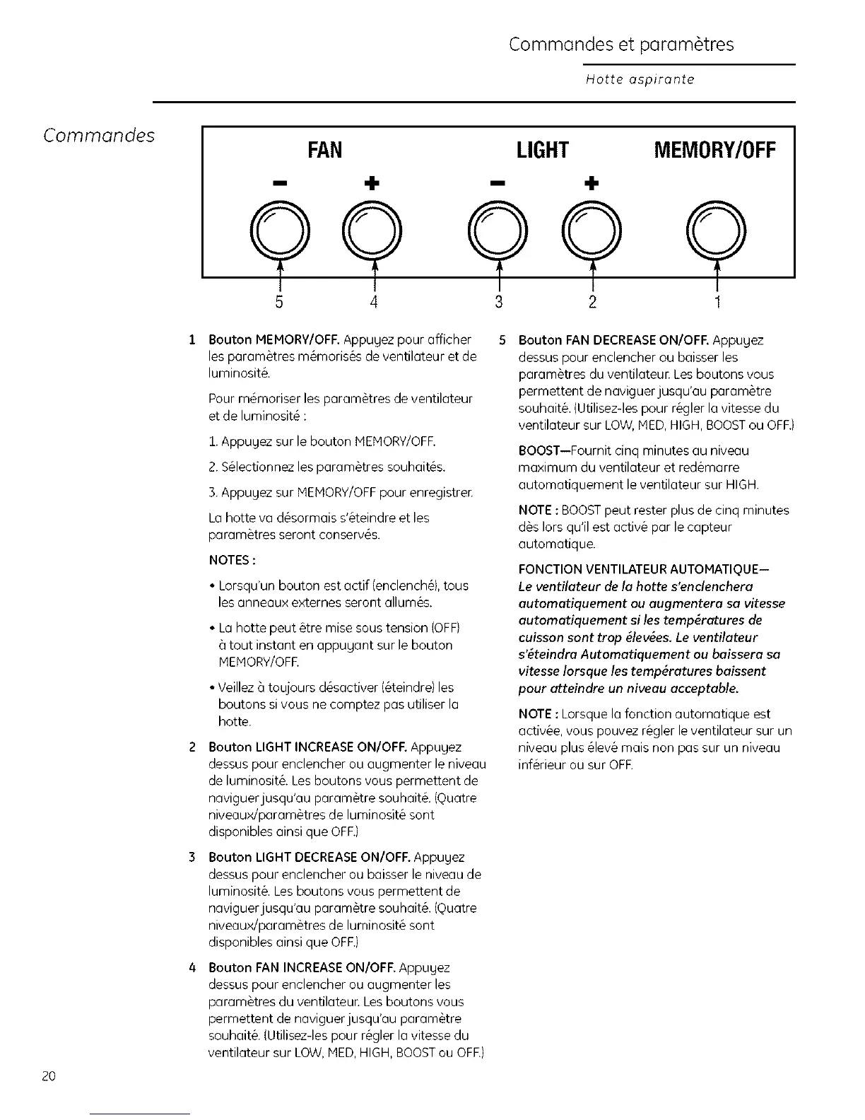 ventilateur sur LOW,PIED,HIGH,BOOSTou OFF.)